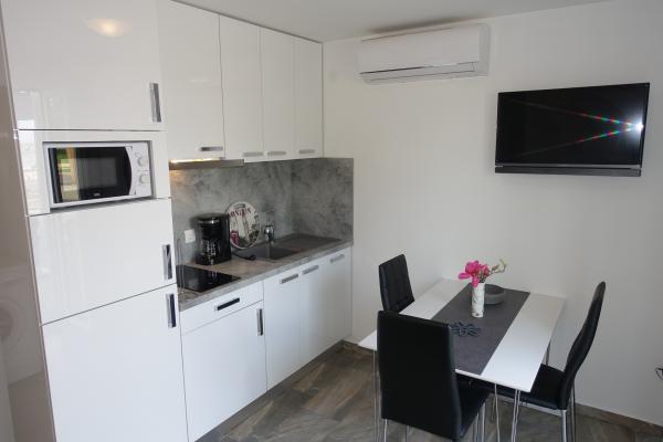 Bardzo mili gospodarze, jeśli ich tam potrzebujesz, ale nie rzucają się w oczy. Mieszkanie jest czyste, schludne, bardzo dobrze wyposażone w styl i design. Piękny widok z mieszkania-tarasu. Plaża nad drogą, abyś mógł wskoczyć do mieszkania w dowolnym momencie bezpośrednio przy kawie i toalecie. Dużym plusem jest również to, co mieszkanie znajduje się na parterze. Jesteśmy bardzo zadowoleni i wracamy ponownie.