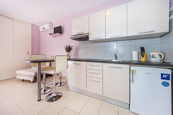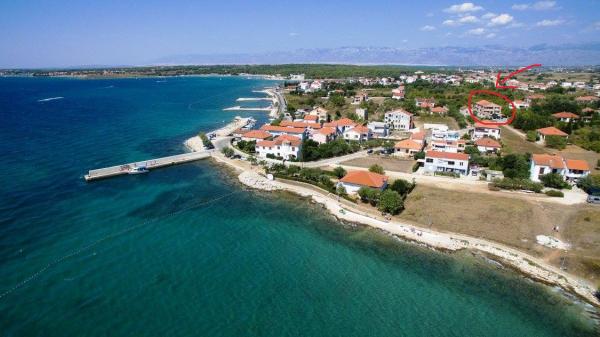 Apartamenty znajdują się 150 metrów od morza i plaży Porat oraz 300 m od piaszczystej plaży Pliša i są w idealnej lokalizacji, jeśli masz małe dzieci, niektóre apartamenty mają widok na morze z tarasu. Są otoczone dużym podwórzem i parkingiem dla Twojego samochodu. Apartamenty są w pełni wyposażone, klimatyzowane z telewizją satelitarną i siecią WIFI, która jest wliczona w cenę wynajmu, a także sprzątanie końcowe. W apartamentach dostępna jest czysta pościel i ręczniki do twarzy. Znajdują się one 20 minut spacerem od ośrodka Zaton Holiday Resort i można tam korzystać z kortów tenisowych, minigolfa, jazdy konnej i wszystkich sportów wodnych. Jesteśmy także 5 minut jazdy samochodem od starego chorwackiego historycznego miasta Nin.