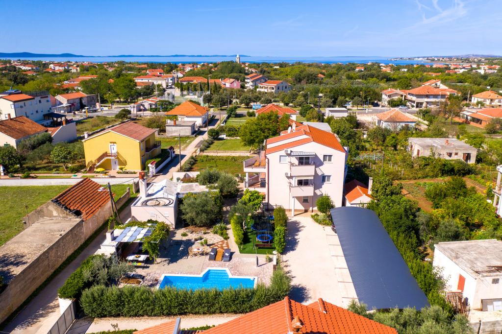 Apartamenty "ZATON", będące własnością rodziny MIljkovićów, znajdują się w małym dalmatyńskim miasteczku Zaton między Zadarem a historycznym miastem Nin, w pobliżu słynnej już Holliday Village Zaton, ok. 900 metrów od plaży. Sam dom zbudowany w stylu śródziemnomorskim z bogatym ogrodem, osobnym wejściem, zadaszonym parkingiem, bogatym placem zabaw dla dzieci (huśtawki, trampoliny, huśtawka) oraz otwartą letnią kuchnią z grillem, gdzie można przygotować grilla i cieszyć się spokojnym wieczorem. Szczególny urok domu nadaje duży odkryty basen dla wszystkich gości. Siedem komfortowo wyposażonych, klimatyzowanych apartamentów znajduje się na parterze oraz na pierwszym i drugim piętrze domu. Oprócz części sypialnej zawierają wyposażoną kuchnię, toaletę z prysznicem, taras, telewizję satelitarną, bezpłatne WI-FI. Niedaleko od nas znajduje się znany kurort turystyczny „Zaton”, znany z piaszczystej plaży, bogatej oferty sportowej, atrakcyjnego programu rozrywkowo-kulturalnego i dyskoteki.