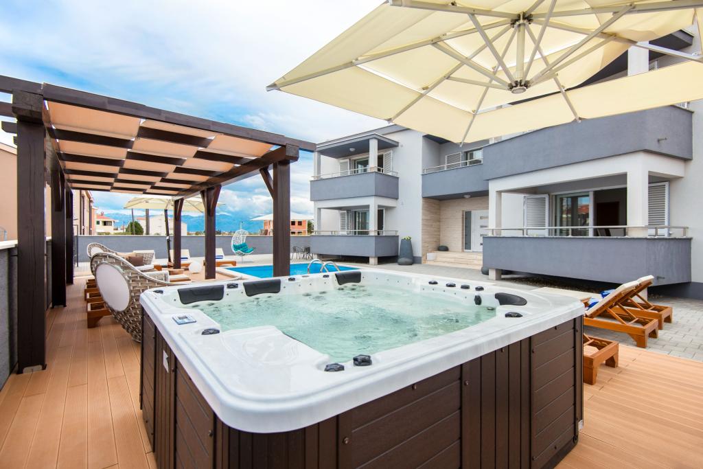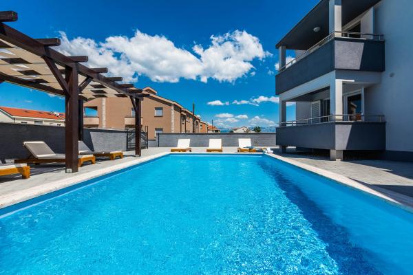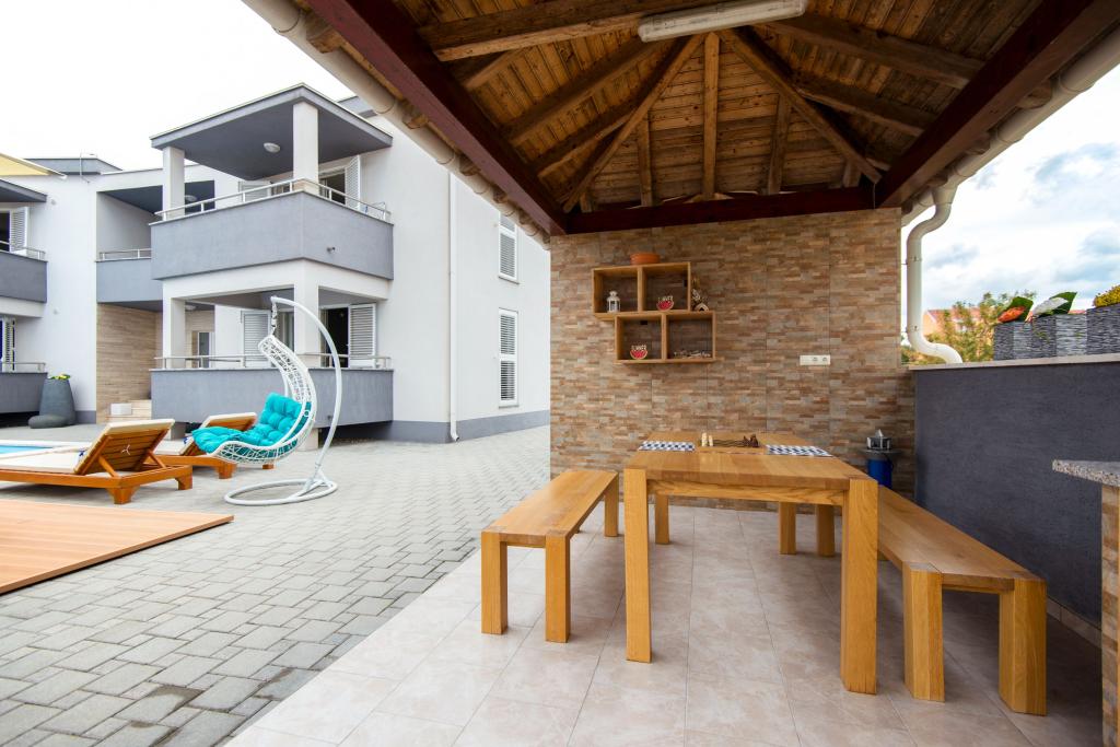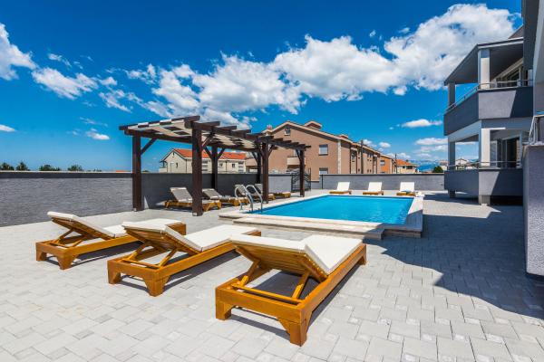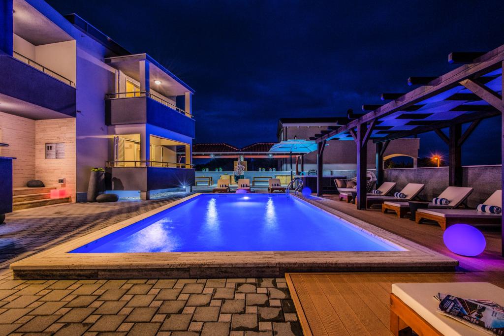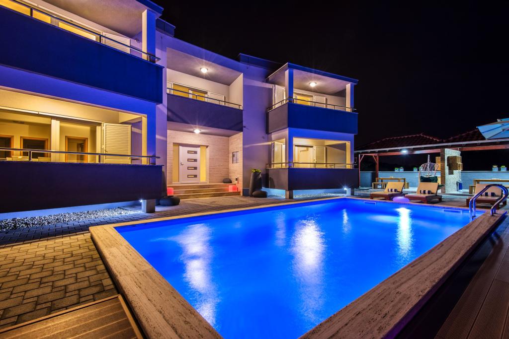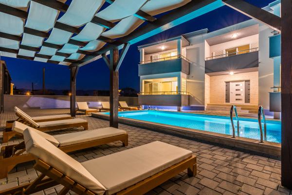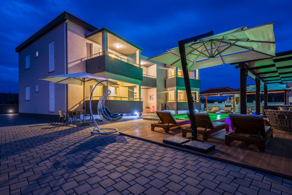Apartamenty Villa More - dom z czterema apartamentami (maks. 4 osoby) i dwoma pokojami (w każdym pokoju maks. 2 osoby) w Zatonie, w bezpośrednim sąsiedztwie ośrodka turystycznego Zaton. Pokój Val (parter) nie posiada balkonu, pokój Sunce (1 piętro - posiada balkon) wejście na balkon znajduje się na korytarzu, a nie bezpośrednio z pokoju. Obiekt położony jest 5 minut spacerem od ośrodka turystycznego Zaton i plaży. Willa posiada basen, jacuzzi, kominek z grillem. Do dyspozycji gości jest również pralka (do wspólnego użytku). Oferujemy również bezpłatne rowery i bezpłatny parking obok domu.