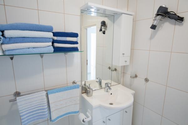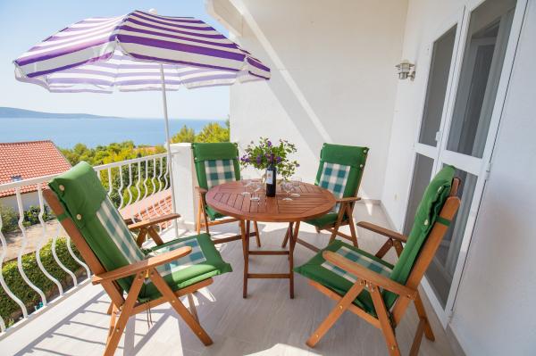 Apartament nr 1 godny polecenia, jeden z lepszych w których byłam, przestronne pokoje, kuchnia bardzo dobrze wyposażona, taras duży z widokiem na morze, łazienka duża, bardzo czysto, właściciele bardzo sympatyczni
