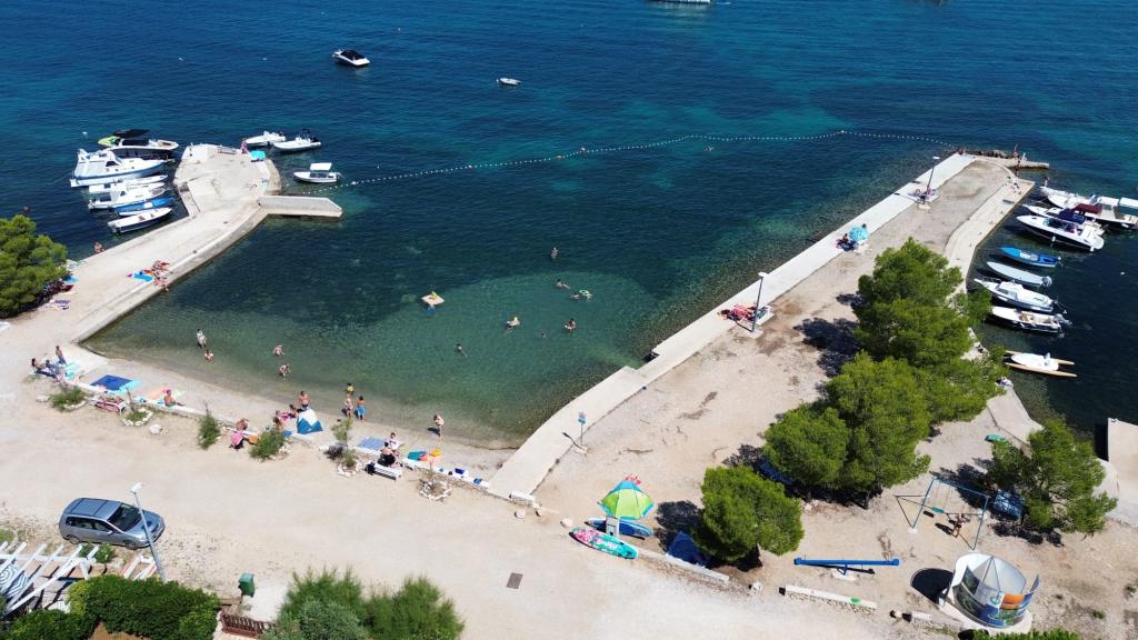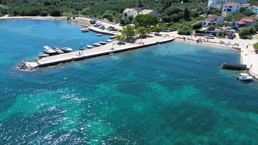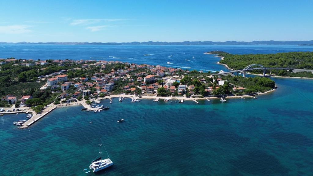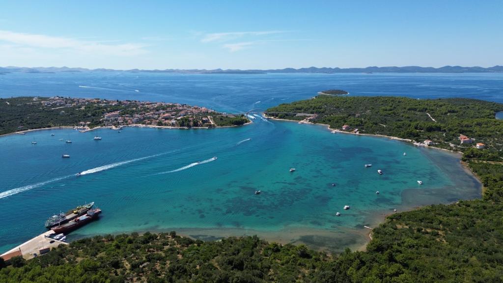 Wyspa Pašman-Ždrelac (w pobliżu mostu), dwupokojowe mieszkanie, klimatyzacja, wifi, duży salon z kuchnią, taras, piekarnik, 100 m od plaży.