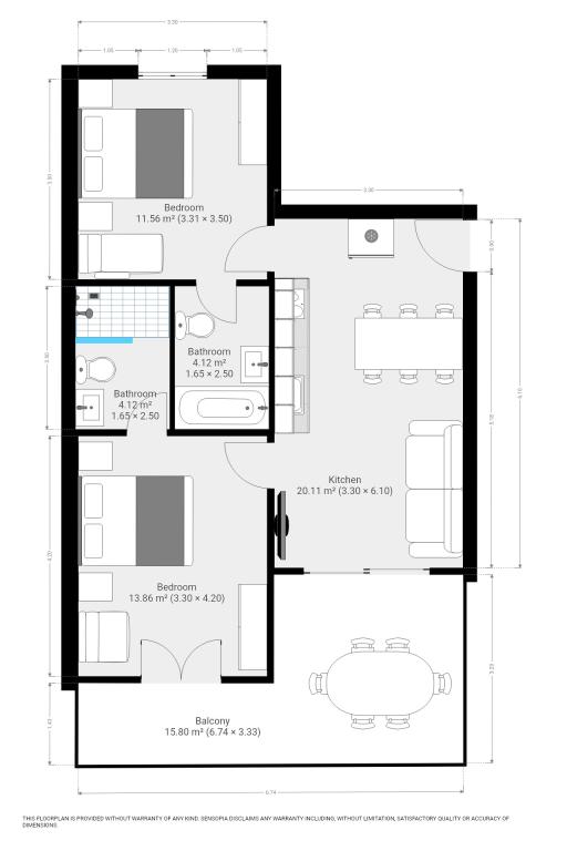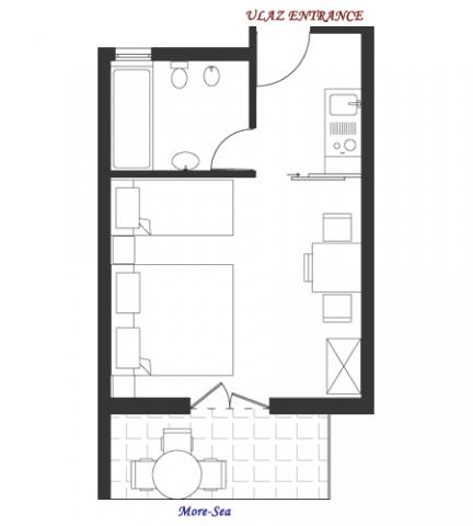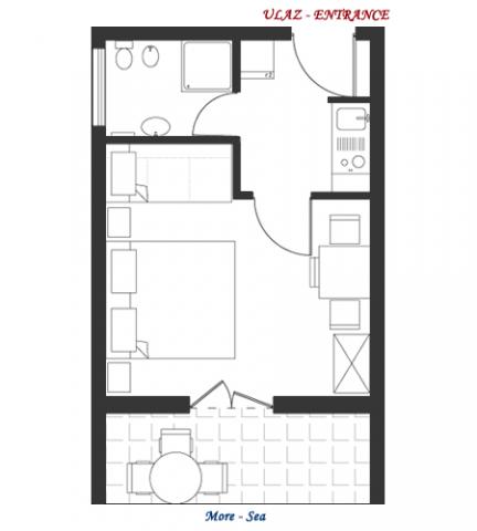 Apartament dla dwóch osób z dwoma dostawkami (35 m2)