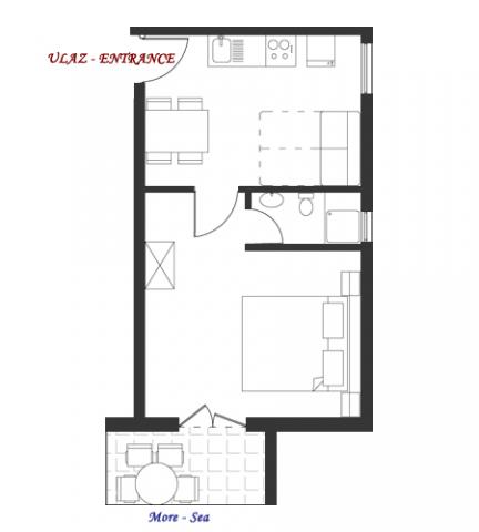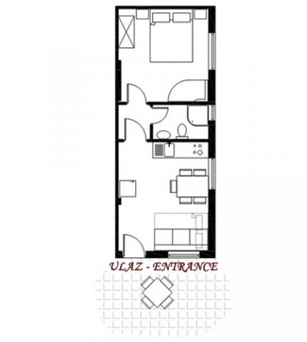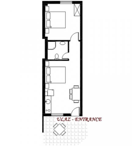 Apartament dla dwóch osób z dwoma dostawkami (42 m2)