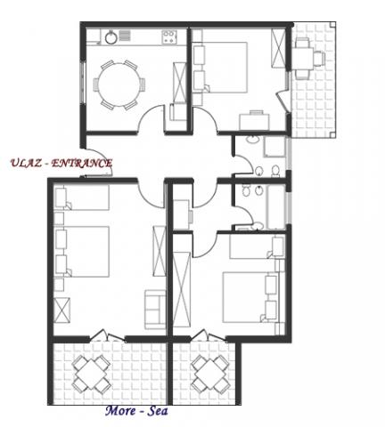 Apartament dla czterech osób z dwoma dostawkami (65 m2)