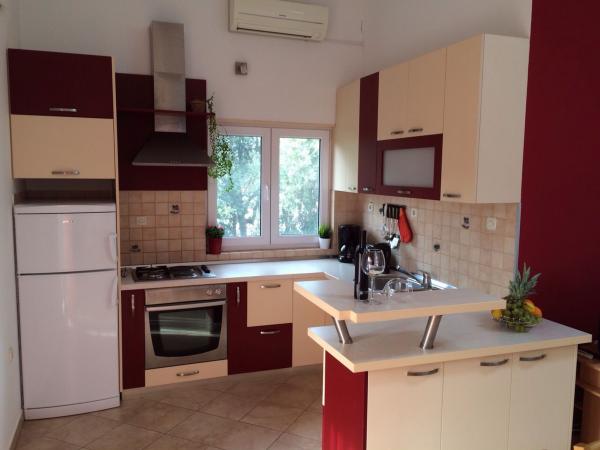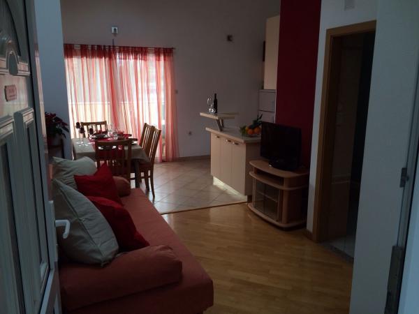 Apartamenty znajdują się w miejscowości Žman na wyspie Dugi Otok w archipelagu zadarskim. Apartamenty Hrboka składają się z 2 apartamentów, które łącznie mogą pomieścić 8 osób. Dwupokojowy apartament Kovač oferuje wygodę dla 4 osób, a apartament Skrpina oferuje wygodę dla 2 osób w sypialni i 2 osób na dodatkowym łóżku w salonie. Apartamenty wyposażone są w komplet pościeli, naczynia, czajnik, ekspres do kawy, TV i Wi-Fi. Goście mają do dyspozycji parking. Apartamenty położone są około 70 m od morza, 100 m od sklepu, poczty i pogotowia ratunkowego oraz 150 m od plaży. Maximarket Tommy (żywność, artykuły gospodarstwa domowego), apteka, bankomaty (ATM, ERSTE, PRIVREDNA BANKA) i urząd pocztowy znajdują się w miejscowości Sali, która jest oddalona o ok. 9 km dalej. Port promowy oddalony jest o około 20 km i znajduje się w miasteczku Brbinj. W miasteczku Žman znajduje się restauracja i tawerna, w których można zjeść, a także kawiarnia nad plażą.