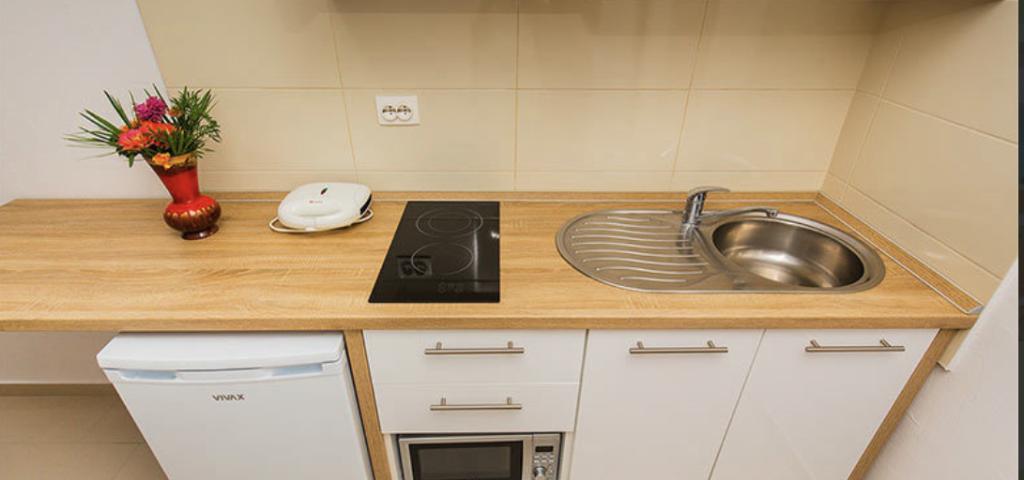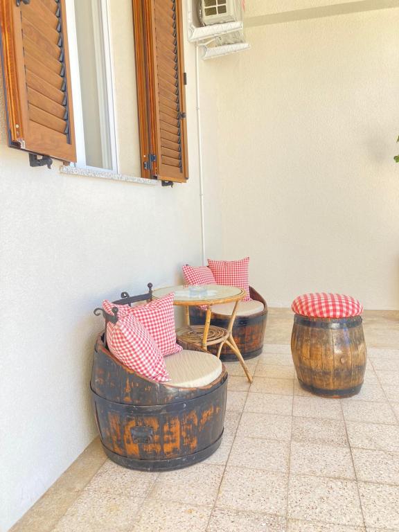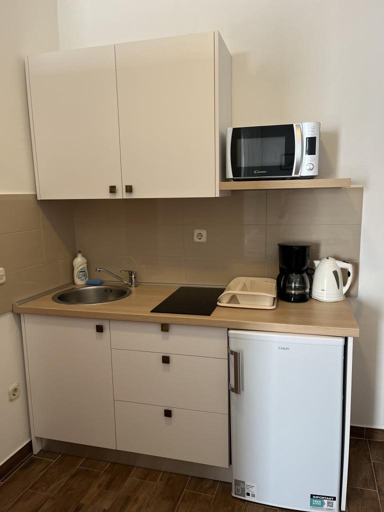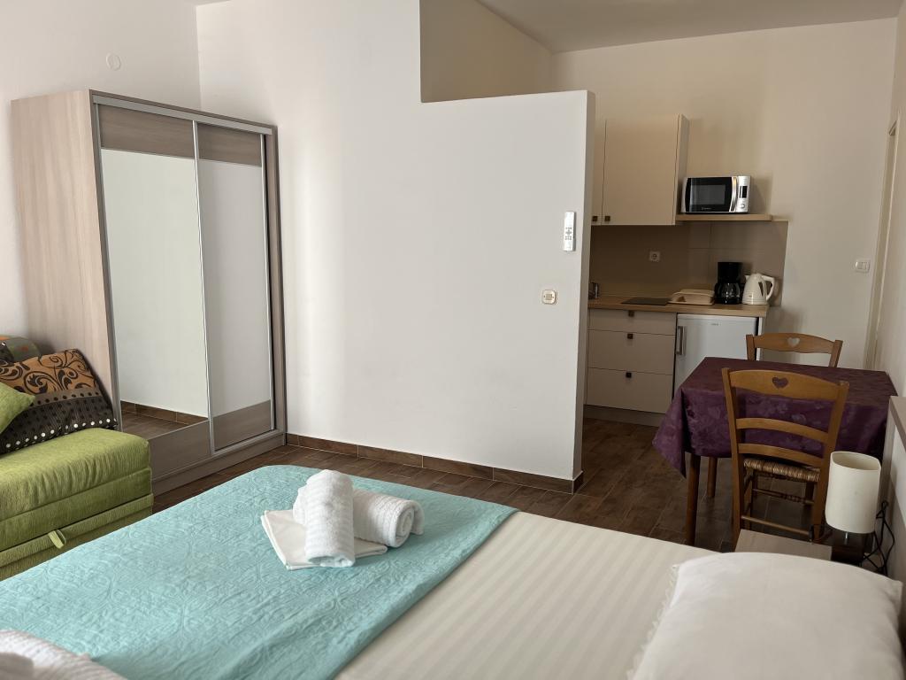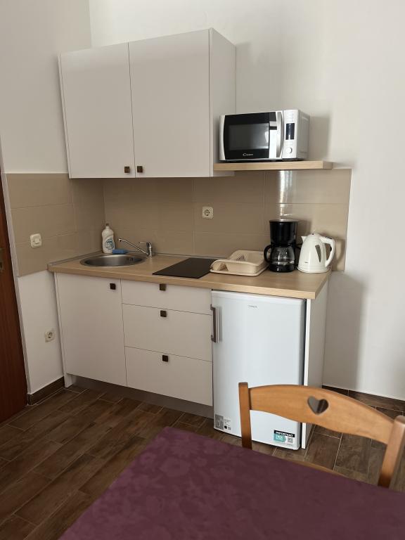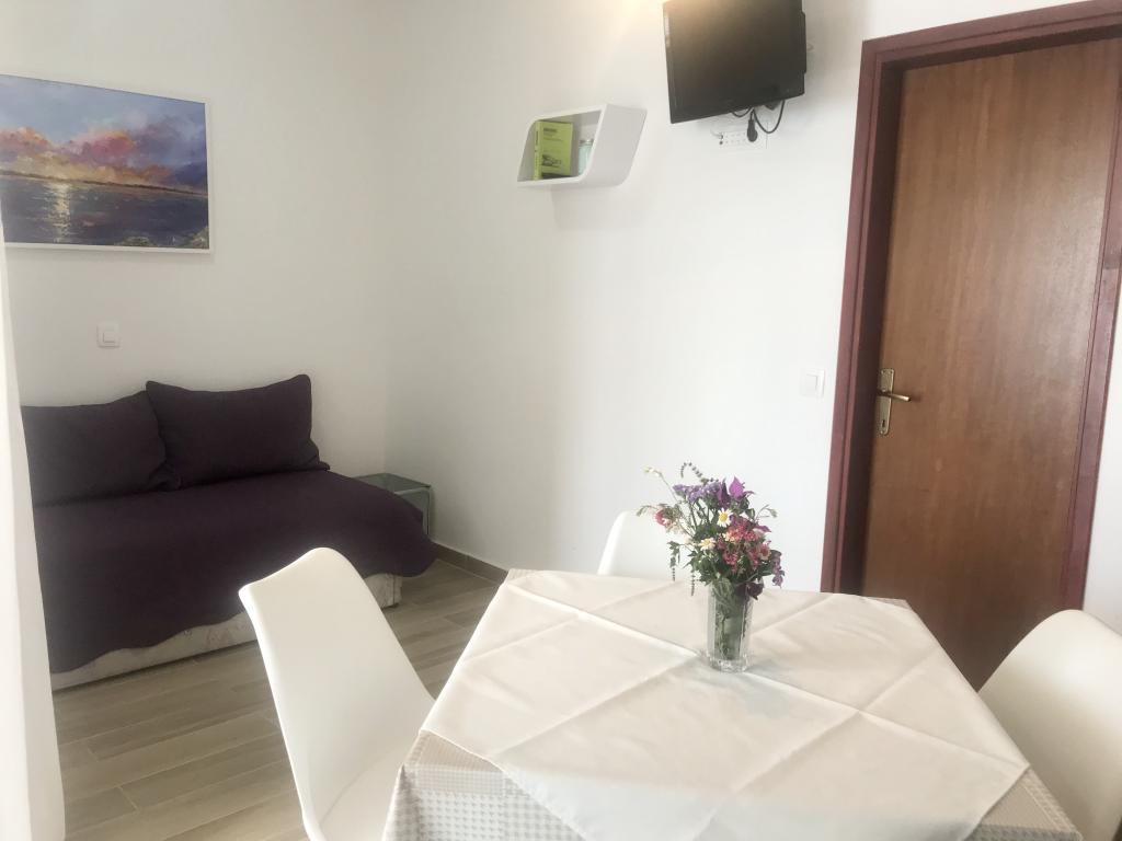 Dobrze wyposażone apartamenty w pierwszym rzędzie do morza w spokojnym miejscu Zubovici (Drazica 9). Nieruchomość znajduje się 5 minut spacerem od centrum miasta, w którym znajdują się restauracje, poczta, sklep, piekarnia. Odległość do piaszczystej plaży wynosi 5 minut spacerem, a przed domem znajduje się mała plaża. Wszystkie pokoje wyposażone są w klimatyzację, telewizor, bezpłatny dostęp do Internetu i parking strzeżony. Na podwórku do dyspozycji gości jest grill.
