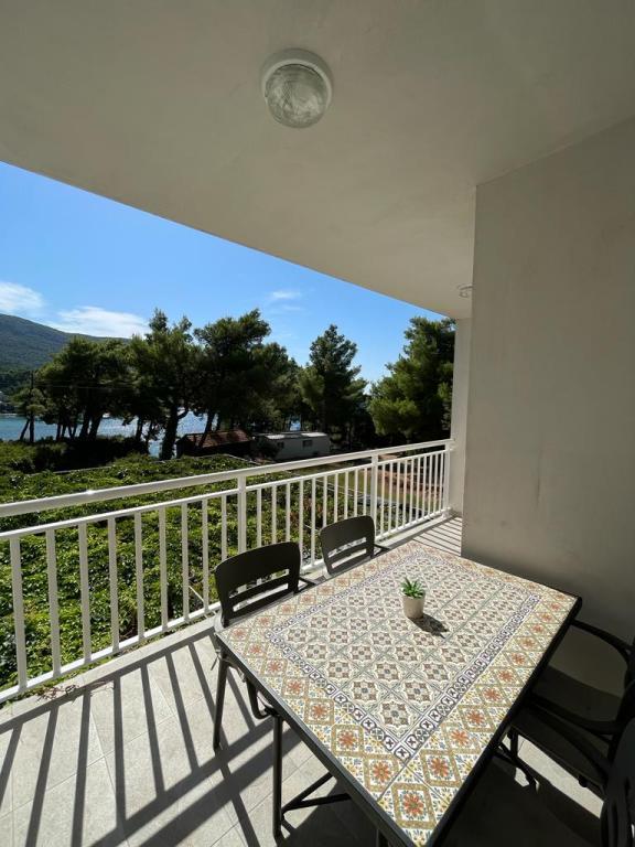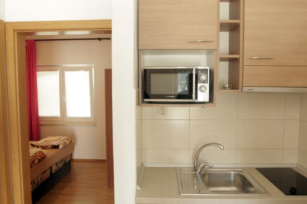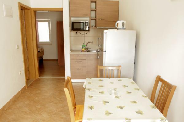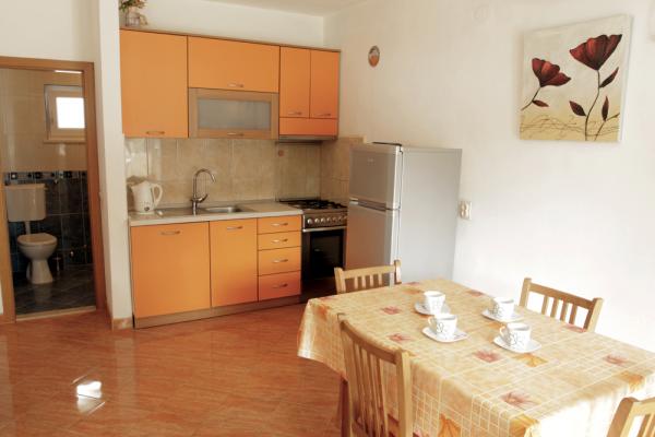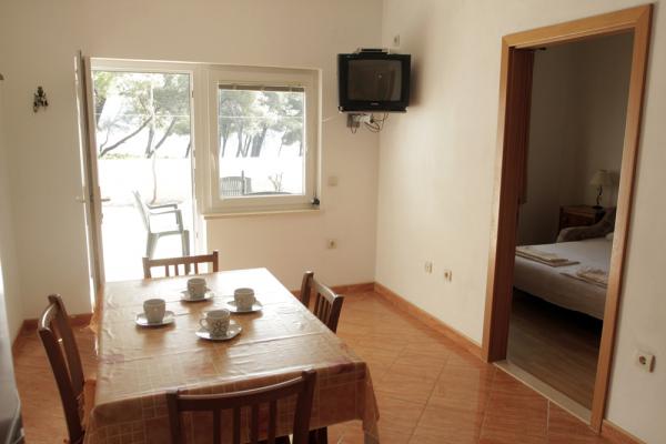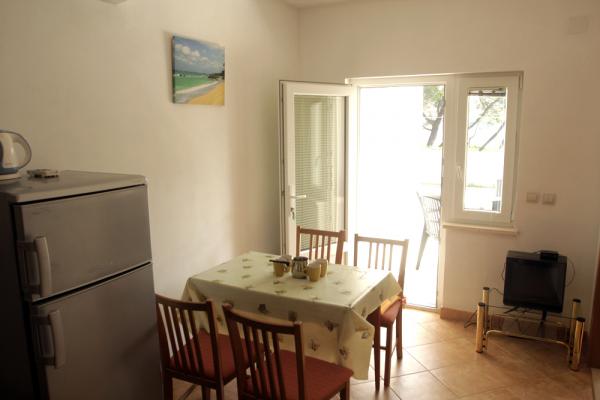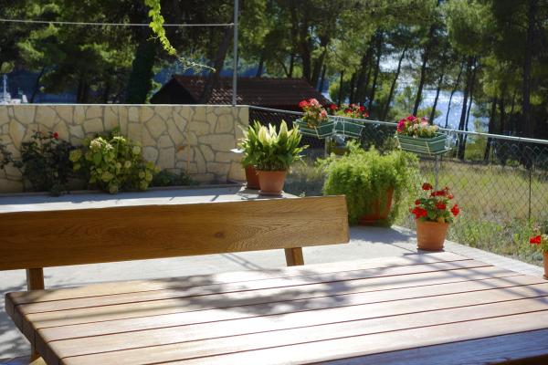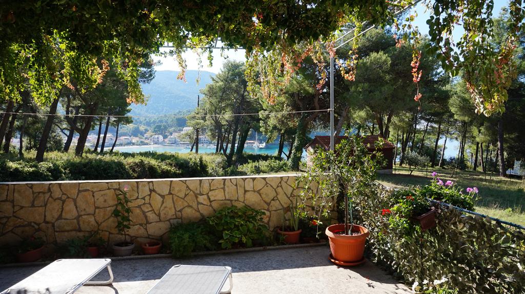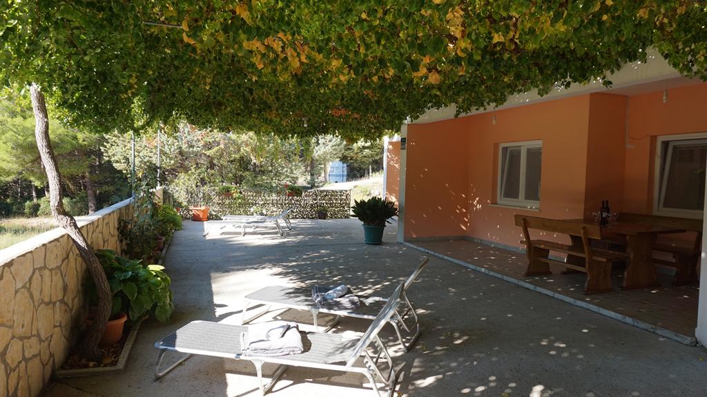 Apartamenty znajdują się 50 m od głównej plaży, poniżej domu znajduje się kilka małych plaż. 5 minut spacerem do centrum, w którym znajduje się sklep, poczta, bankomat. Obiekt otoczony jest lasem sosnowym z dużym tarasem pokrytym krzewem winorośli. Ma prywatny grill i prysznic na świeżym powietrzu. Obiekt można wynająć w całości lub osobno.