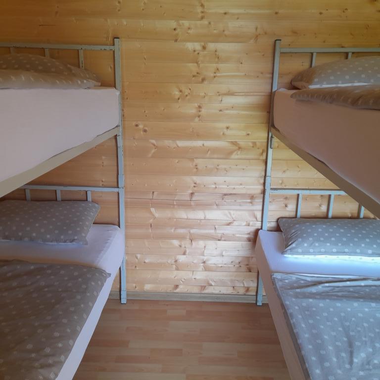 Istnieje możliwość zarezerwowania łóżka w starej wyremontowanej stodole na siano. W szopie znajduje się 14 łóżek, które można zarezerwować indywidualnie lub dla grupy. . Toaleta i prysznice znajdują się w centralnym węźle sanitarnym i oddalone są o zaledwie 50 m. Škedej znajduje się w samym parku adrenaliny, dzięki czemu można zobaczyć, co się dzieje z okna.