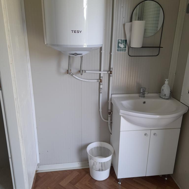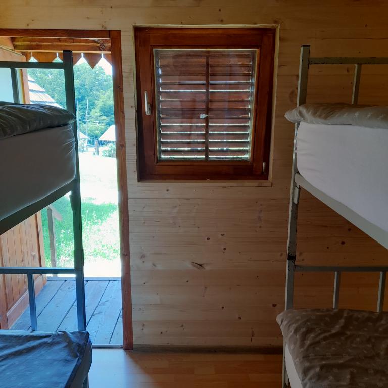 Domy wykonane są z naturalnych materiałów - drewna. Zostały one zbudowane w technologii budownictwa tradycyjnego o wymiarach 4 x 3 m. Domek może pomieścić 5 osób dorosłych i 2 dzieci do 15 lat lub 3 osoby dorosłe. Każdy dom posiada taras z widokiem. Toaleta i prysznice znajdują się w centralnym węźle sanitarnym w odległości zaledwie 20 metrów. Położone są w przepięknej przyrodzie, w bezpośrednim sąsiedztwie parku adrenalinowego.