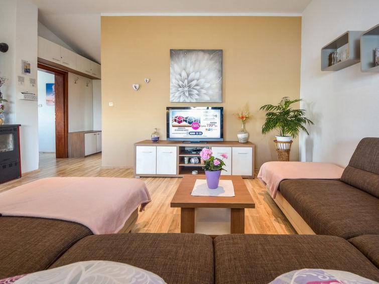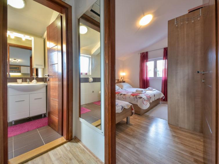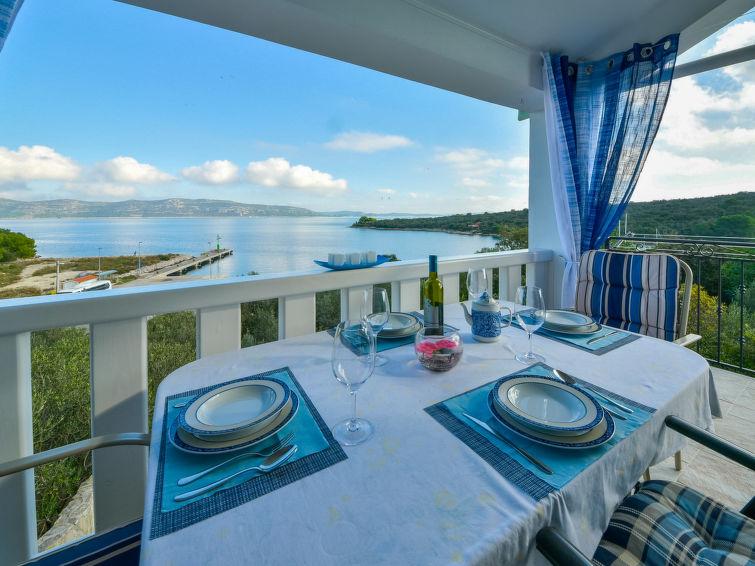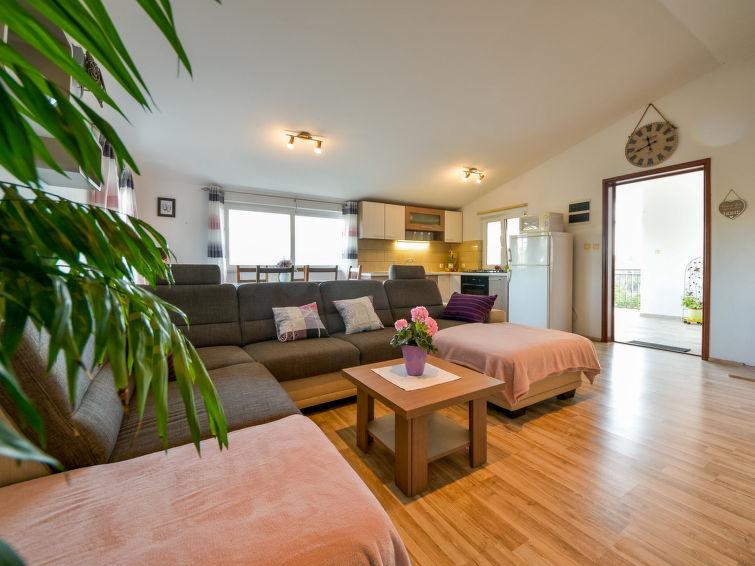 Wnętrze 5-pokojowy dom 100 m2 na 2 poziomach. Salon / jadalnia 20 m2 z TV (satelitarna). odbiornik (telewizor z płaskim ekranem), klimatyzacja. 1 pokój z 1 łóżkiem (80 cm, o długości 200 cm), 1 frankiem. łóżko (160 cm, długość 200 cm). Otwarta kuchnia (4 palniki, piekarnik, zamrażarka). Prysznic / WC. Na piętrze: (zewnętrzne schody) salon / jadalnia 25 m2 z TV (satelitarna). odbiornik (telewizor z płaskim ekranem), klimatyzacja. Wyjdź na taras. 1 pokój z 1 frankiem. łóżko (160 cm, długość 200 cm), prysznic / WC. 1 pokój z 1 łóżkiem (90 cm, o długości 200 cm), 1 frankiem. łóżko (160 cm, długość 200 cm). Otwarta kuchnia (4 palniki, piekarnik, kuchenka mikrofalowa, zamrażarka). Prysznic / WC. Taras 20 m2 (zadaszony), taras 12 m2 (zadaszony). Meble ogrodowe. Bardzo ładny widok na morze. Dostępne: Internet (bezprzewodowa sieć LAN [WLAN], bezpłatnie). Dozwolone jest maksymalnie 1 zwierzę / pies.