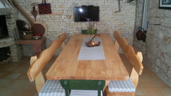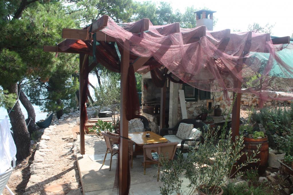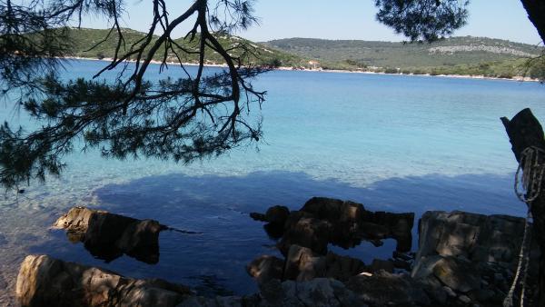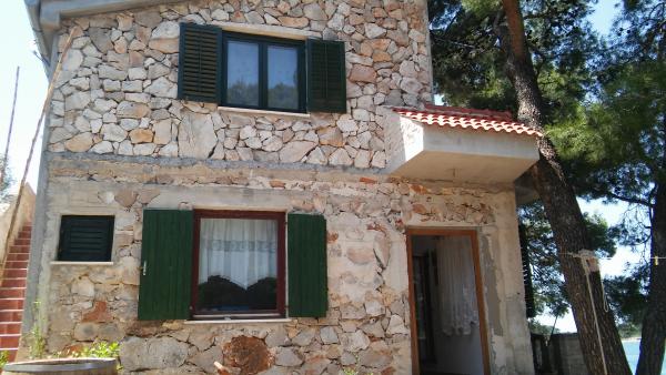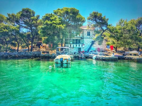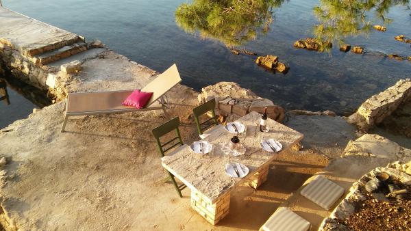 Oferujemy zakwaterowanie w tradycyjnym domu rybackim na prywatnej wyspie, zaledwie 800 metrów od głównej wyspy Ugljan, 2 metry od morza, z własnym nabrzeżem do cumowania, 4 tarasami do opalania i odpoczynku oraz kominem wewnątrz i na zewnątrz, prysznic wewnątrz i na zewnątrz. Do domu można dostać się wyłącznie łodzią. Jest to mały, ale wygodny dom rybacki w zabudowie bliźniaczej tuż przy wybrzeżu i jedyny bliźniak na całej wyspie. Warunki są niemal Robinsonowskie, są pewne udogodnienia, takie jak prąd ze słońca, który zasila lodówkę, telewizor, oświetla dom i ładuje urządzenia elektroniczne, bo w całym domu panuje napięcie 220 woltów. W domu jest także internet. Jest atrakcyjny dla osób lubiących samotność i przebywanie na łonie natury. Ciesz się kamiennym domem w cieniu sosen, obok błękitnego morza, zachodu słońca, morza, wędkowania i wszystkich naturalnych piękności małej wyspy. Oderwij się od reszty świata i zrelaksuj wszystkie zmysły w nietkniętej przyrodzie.