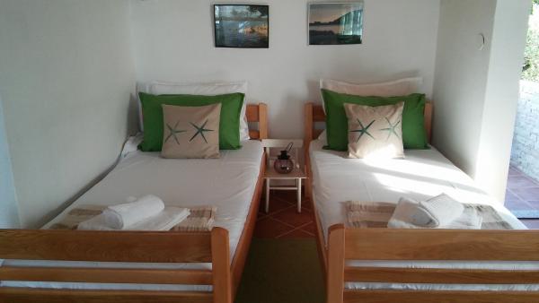 W dniu przyjazdu wszyscy goście otrzymują do spróbowania domowe wino, 1 butelkę czerwonego i 1 butelkę białego oraz odrobinę domowej roboty oliwy z oliwek. Jeśli gość przyjedzie ze zwierzęciem, psem lub kotem, zostanie naliczona dodatkowa opłata w wysokości 10 euro za dzień. Cena wynajmu obejmuje transport z Kali na wyspę oraz z wyspy łódź z silnikiem zaburtowym (patrz zdjęcie). Właściciel oferuje produkty krajowe, wyślij zapytanie. Możliwość przygotowania obiadu specjalnie dla Ciebie, wyślij zapytanie o ofertę, jeśli jesteś zainteresowany, gwarantujemy, że to co oferujemy jest czymś wyjątkowym. Łódź jest wliczona w cenę wynajmu. Drugi właściciel nie ma z tobą nic wspólnego, ma tylko jeden pokój na swojej stronie. Jest przegroda, żeby było całkowicie oddzielone.Drugi współwłaściciel czyli je