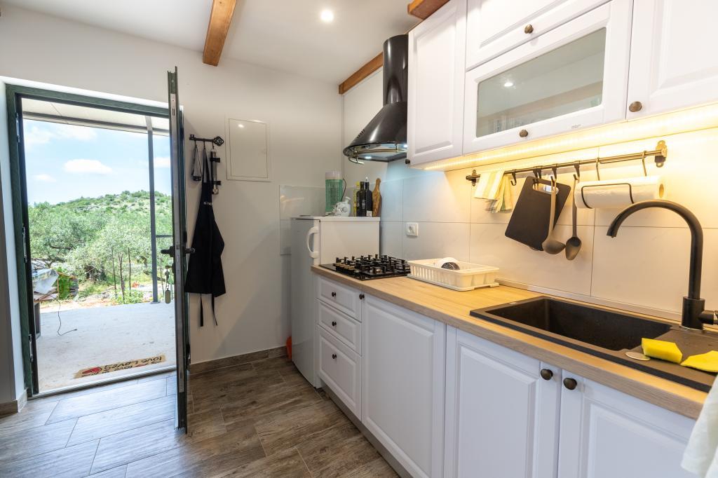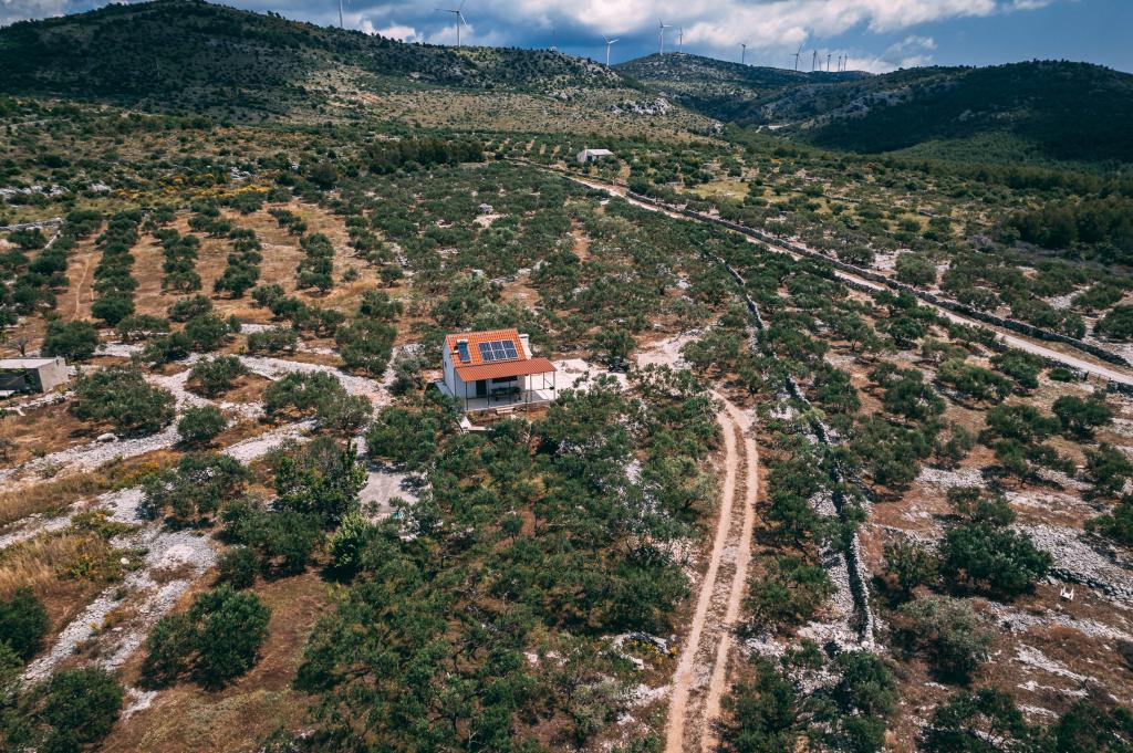 Green House to samowystarczalny domek otoczony gajem oliwnym. Obiekt oddalony jest o 1 km od wioski Dograde i o 1 km od centrum wioski Marina, gdzie znajdują się plaże, restauracje, supermarkety, targ itp. 5 km dalej. Dom posiada własną studnię z wodą, jest zasilany panelami słonecznymi i ma instalację 220 V zapewniającą wszystkie udogodnienia miejskie (internet, Smart TV, Netflix, zmywarkę). Podgrzewacz wody zasilany energią słoneczną podgrzewa wodę, a osoby opalające się mogą korzystać z leżaków przed domem i ochłodzić się pod prysznicem na podwórku. W chłodniejsze dni można ogrzać się piecem opalanym drewnem. Do dyspozycji gości jest taras z dużym stołem, ławkami i krzesłami, grill oraz ogródek z niespryskiwanymi sezonowymi warzywami, które można swobodnie spożywać (pomidory, ogórki, papryka itp.). W gaju oliwnym o powierzchni 10 000 m2 otaczającym dom można cieszyć się spokojem i samotnością. Nieruchomość jest ogrodzona ze wszystkich stron murami z kamienia bez zaprawy i jest odpowiednia dla zwierząt domowych. Na tym obszarze znajduje się ponad 20 km tras rowerowych i ścieżek spacerowych.