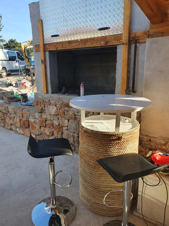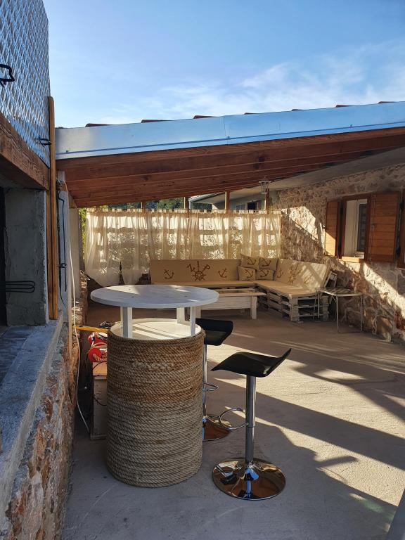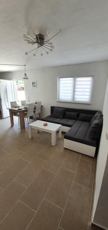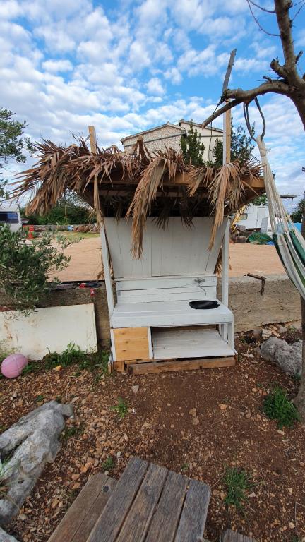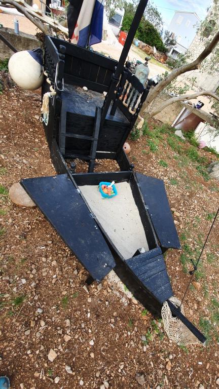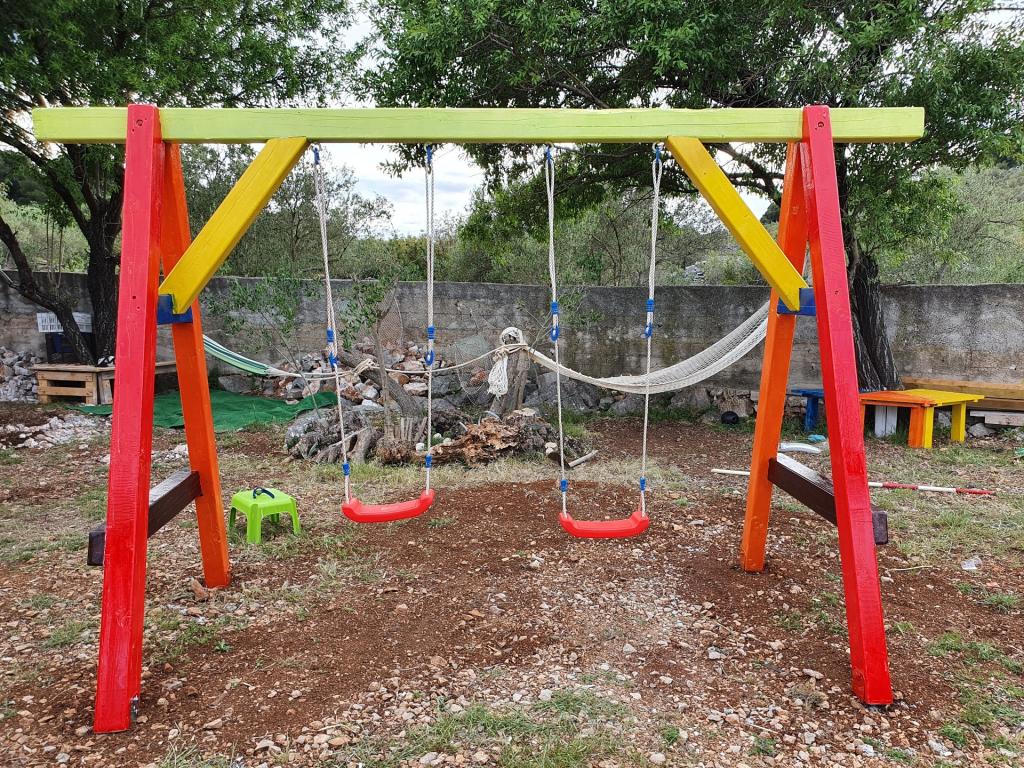 Nowy dom wakacyjny dla rybaków na wyspie Murter. Dom położony jest kilka minut spacerem od plaży Pod Vrške i plaży Luka. Plaża Slanica jest 10 min. odejść od domu. Domek składa się z dwóch sypialni. Jeden pokój dwuosobowy z łóżkiem 160 x 200 i mniejszy pokój z łóżkiem 80x200 z możliwością rozciągnięcia do 160x200 dla dwojga dorosłych lub dwojga dzieci. Dwie łazienki, jedna z umywalką, toaletą i pralką, druga z toaletą, umywalką i dużym prysznicem 90 x 120. Salon z narożną sofą. Jadalnia ze stołem dla 4 osób (w razie potrzeby mamy również krzesełko dla małego dziecka). Kuchnia wyposażona w płytę grzewczą, piekarnik, czajnik, ekspres do kawy i dolche gusto. Prywatny parking przed apartamentem przystosowany dla osób niepełnosprawnych. Na tarasie 60 m2 znajduje się grill. Obok domków znajduje się prywatny plac zabaw dla dzieci z trampoliną, statkiem pirackim z piaskiem, kuchnią dla dzieci, huśtawkami, liną wspinaczkową, hamakami i koszem do koszykówki.