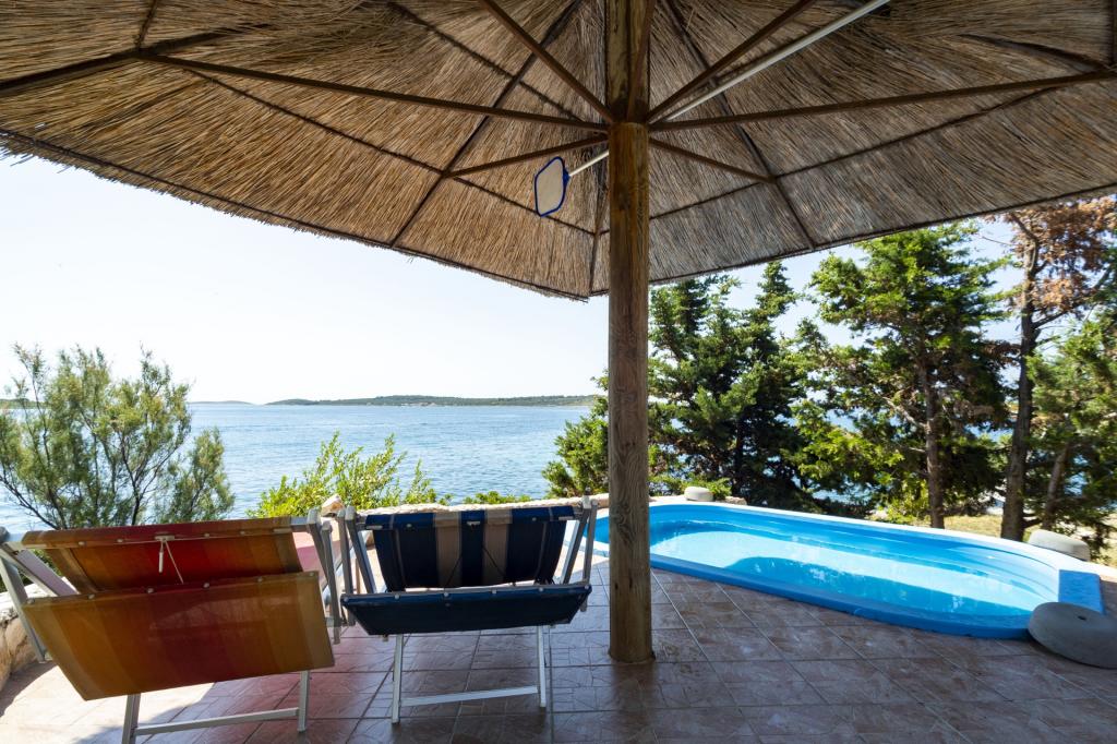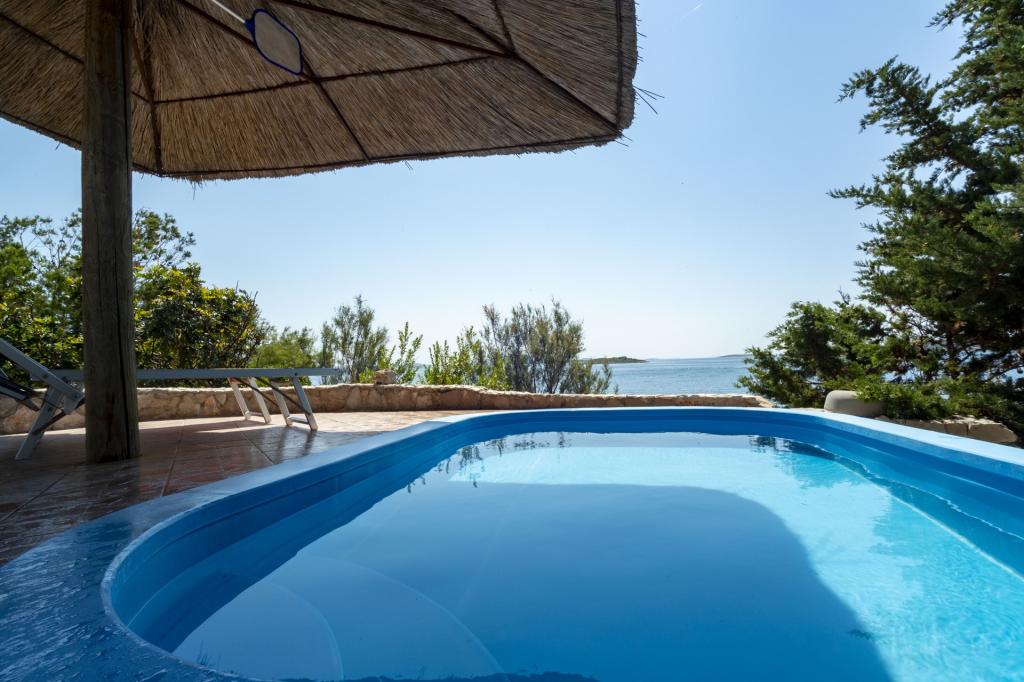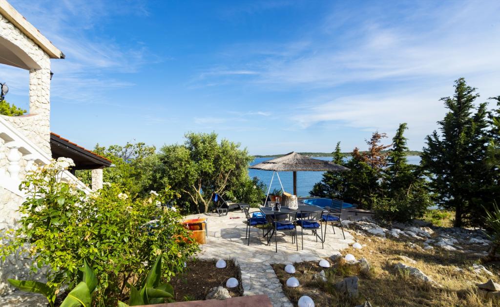 Villa Spider dla 8 osób znajduje się na wyspie Zizanj (tuż za Pasmanem) i 30 minut od Parku Narodowego Kornati. Teren ma powierzchnię 4500 m2 i oferuje możliwość ekskluzywnych i romantycznych wakacji dla turystów, którzy kochają spokój, ciszę i prywatność. Pierwszy sąsiad jest około 400 metrów. Istnieje prywatna kamienna plaża z prywatnym pomostem, a dla dzieci i osób nie umiejących pływać znajduje się mniejszy basen z wodą morską i duży parasol ze słomy. Dom składa się z 3 sypialni, dwóch z podwójnymi łóżkami i jednej z 4 pojedynczymi łóżkami oraz salonu z rozkładaną sofą. Dom ma energię słoneczną, która zasila 2 lodówki i bieżącą wodę ze zbiornika. Rustykalna kuchnia z murem połączona jest z salonem, w którym znajduje się kominek. Na dużym zadaszonym tarasie znajduje się stół na obiady i karty. Grill na świeżym powietrzu znajduje się na jednym z 4 tarasów.