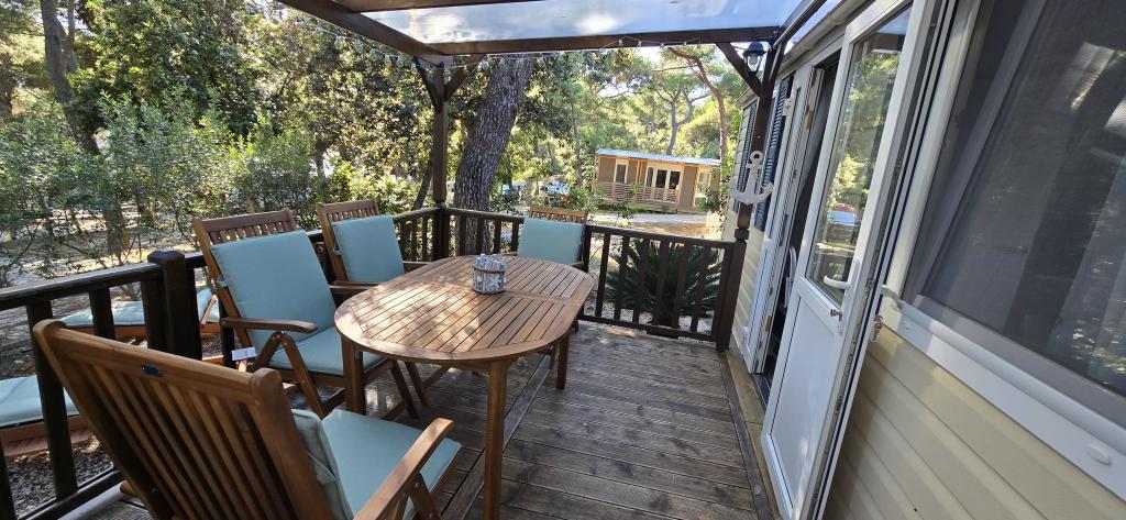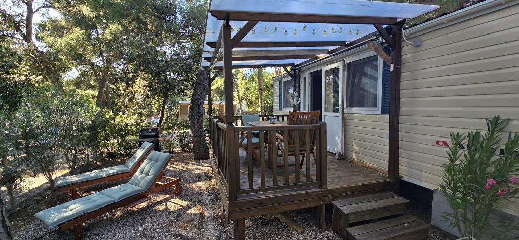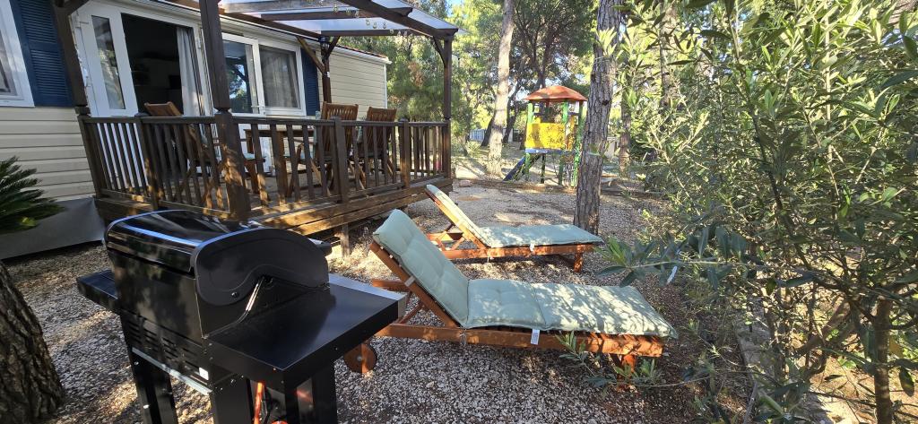 Lato nadeszło. Zarezerwuj termin na 2025 rok. Domek mobilny Vomer Apartament przy plaży W pełni wyposażony dom mobilny na kempingu Kozarice Plaża Pakoštane 50 m Przyjemny cień nawet przy najsilniejszym słońcu. 4+1 osób 32 m2 + taras 10 m2 Sypialnia 1 1 łóżko małżeńskie Sypialnia 2 2 łóżka pojedyncze Salon (rozkładana sofa) 2 łazienki prysznic zewnętrzny, TV Bezpłatny parking (bezpośrednio przy domu) Bezpłatne WiFi (szybki internet A1) Klimatyzacja Grill Pościel, ręczniki Kuchnia wyposażona jest w płytę indukcyjną, lodówkę z zamrażarką, mikrofalówkę, toster, czajnik, naczynia... Na tarasie czeka na Państwa miejsce do relaksu na wygodnych leżakach. Na terenie kempingu znajduje się park, a w pobliżu znajdują się pralka i suszarka. Restauracja i kawiarnia znajdują się na terenie obozu, kilka minut spacerem. Blisko miasta (3 min pieszo), promenady, restauracji, kawiarni, apteki, sklepów,