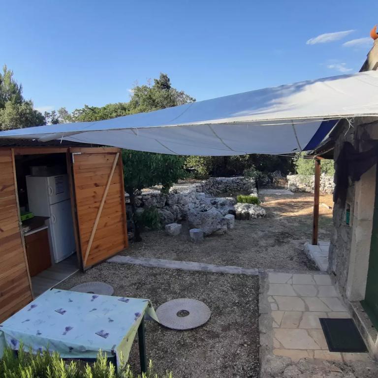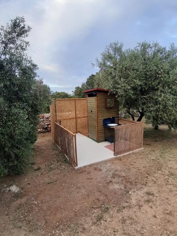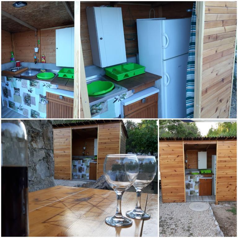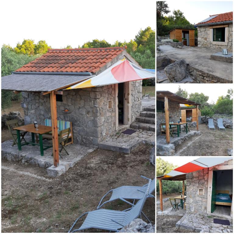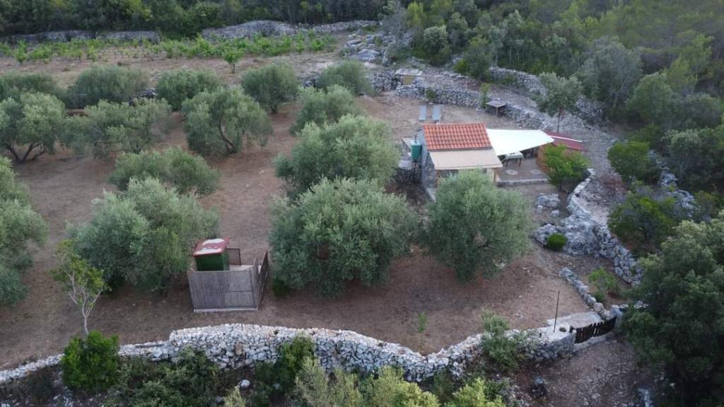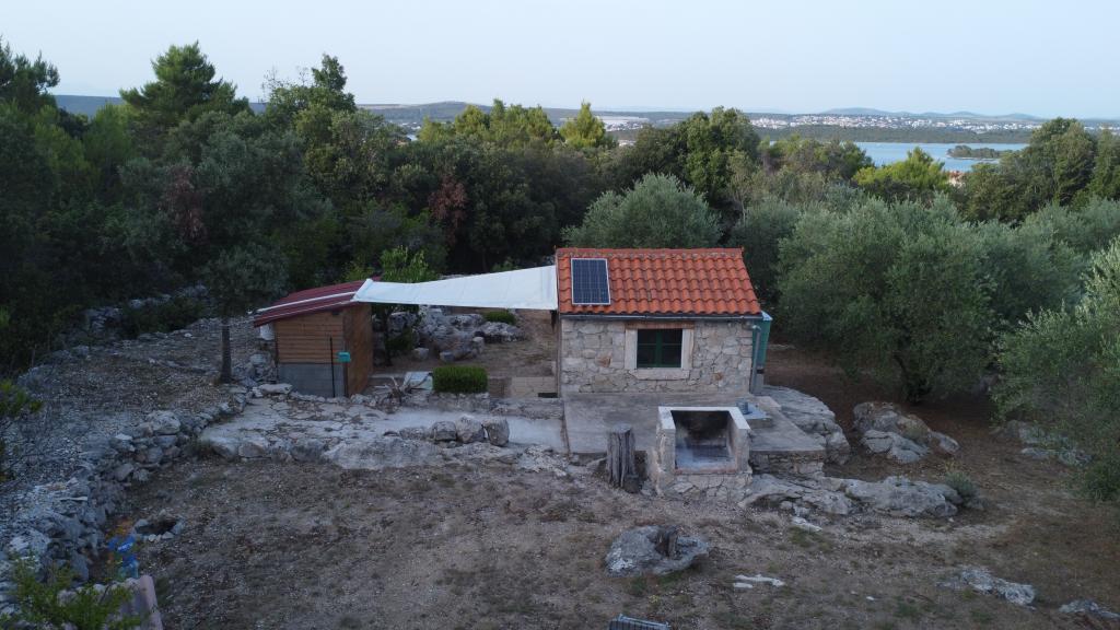 Dom położony jest na północnej stronie wyspy Pašman, w pobliżu miasta Pašman. Od głównej drogi, gdzie można zostawić samochód, do domu prowadzi łatwy szlak turystyczny o długości 300 m. Dom z jednym pokojem o powierzchni 8m2 wyposażony w minimalne meble. Od strony północnej znajduje się zadaszony taras chroniący przed słońcem i deszczem, natomiast od strony południowej jest otwarty do opalania. Działka o powierzchni 3300 m2 to zagospodarowany gaj oliwny i winnica z kilkoma drzewami owocowymi. Energia elektryczna z układu słonecznego to 220 V tylko do oświetlenia i ładowania telefonów komórkowych. Zakaz używania dużych odbiorników typu tostery, czajniki, suszarki do włosów itp. Kuchnia jest oddzielną jednostką od domu, wyposażona w kuchenkę gazową i lodówko-zamrażarkę gazową, naczynia i zlewozmywak z bieżącą wodą podgrzewaną przez słońce, po zużyciu zbiornik musi być uzupełniany z cysterny. Obok kuchni znajduje się grill opalany drewnem. Toaleta jest oddalona od domu o 15 m, obok której znajduje się prysznic na zewnątrz, po zużyciu należy uzupełnić wodę z cysterny (oszczędzaj wodę).