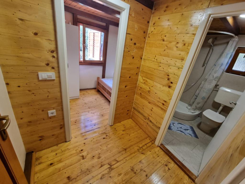 Nowo wybudowany drewniany dom w odosobnionym miejscu na wyspie Babca, do którego można dotrzeć z miejscowości Pašman na wyspie o tej samej nazwie. Znajduje się na ponad 10 000 m2 prywatnej działki i ma 25 m2 powierzchni wewnętrznej, w której znajdują się dwa podwójne łóżka w dwóch pokojach o wymiarach 140x200 cm oraz łazienka. Kuchnia i stół znajdują się na zewnętrznej zadaszonej powierzchni 15m2. W jednym pokoju jest telewizor. W domu jest internet wi-fi.