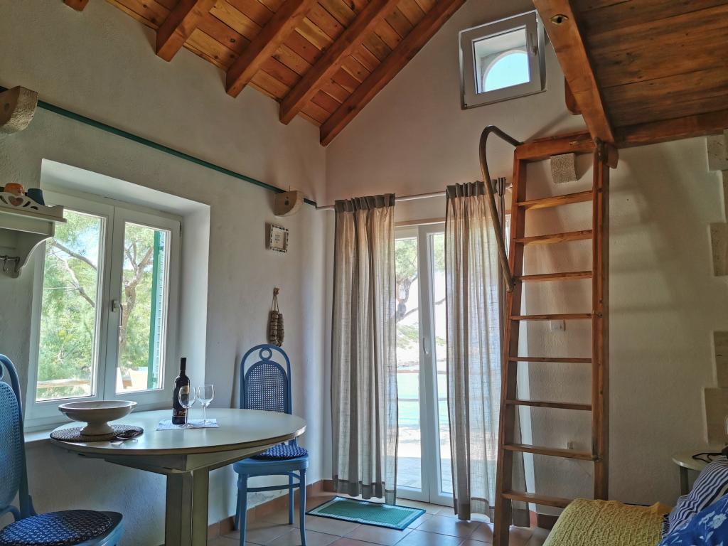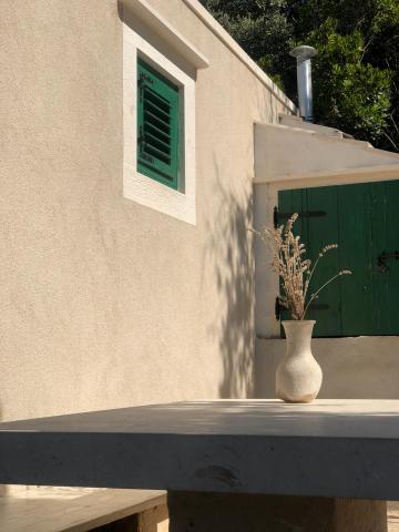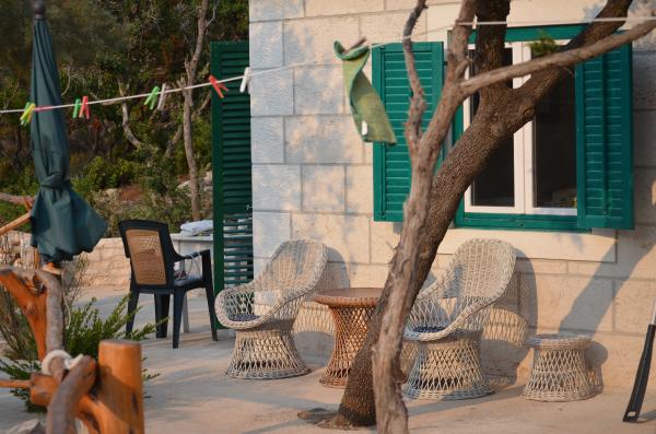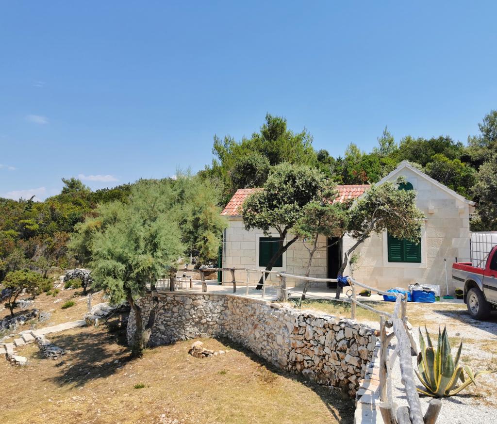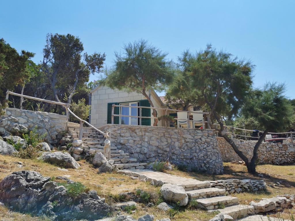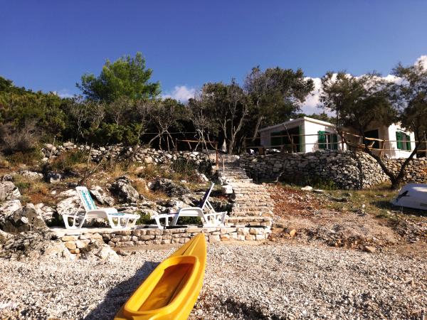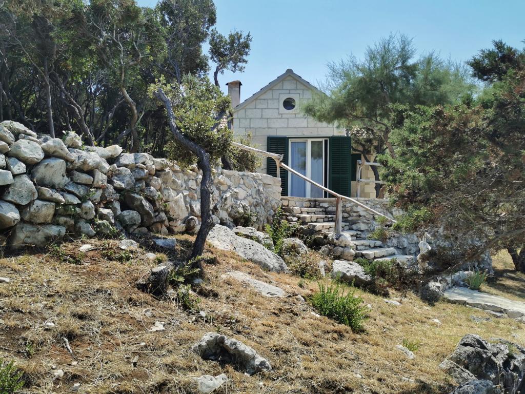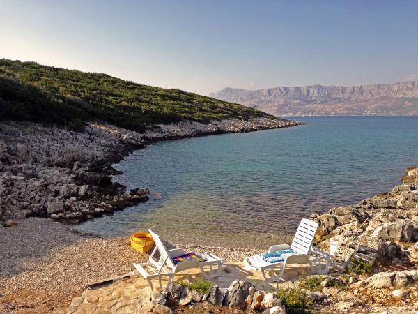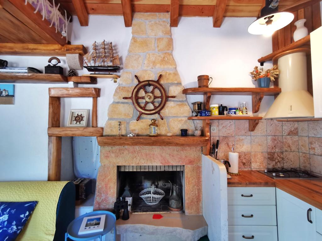 Dom położony jest w zacisznej małej zatoczce Travna w północno-wschodniej części wyspy Brač, kilka metrów od wybrzeża i plaży. W domu znajduje się jeden pokój dwuosobowy, jeden pokój z łóżkiem małżeńskim, galeria do spania i rozkładana sofa, toaleta z prysznicem oraz kuchnia/salon z widokiem na morze i plażę. Kuchnia wyposażona jest w lodówkę i zamrażarkę oraz kuchenkę, a w całym budynku dostępny jest bezprzewodowy internet. Podwórko składa się z ogrodzonego tarasu z miejscem do siedzenia i opalania. Na jednej części tarasu znajduje się grill, a po przeciwnej stronie pola jest drugi taras z kamiennym stołem i częścią wypoczynkową, z której można korzystać po południu, gdy jest zacieniony. Taras jest oświetlony, podobnie jak schody prowadzące na plażę. Do dyspozycji gości jest również kajak dla 2 osób.Pučišća jest najbliżej obiektu i oferuje kilka sklepów, sklepów i kawiarni, a także aptekę, pocztę, bankomat i inne udogodnienia codziennego użytku. Podróż do domu zajmuje 20 minut