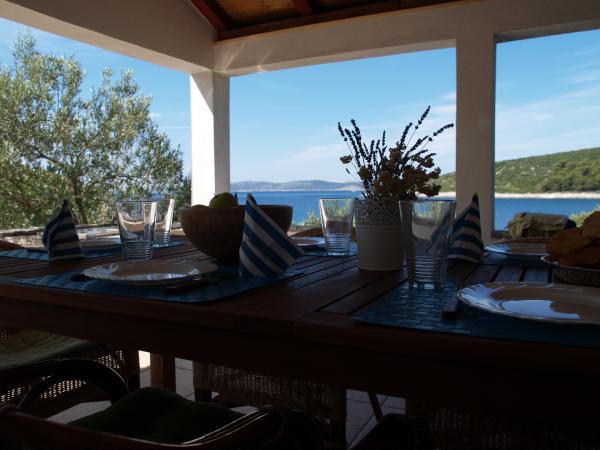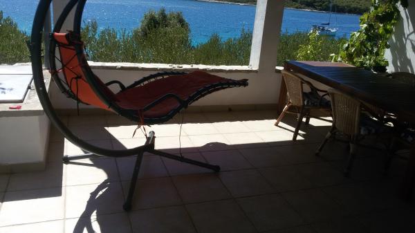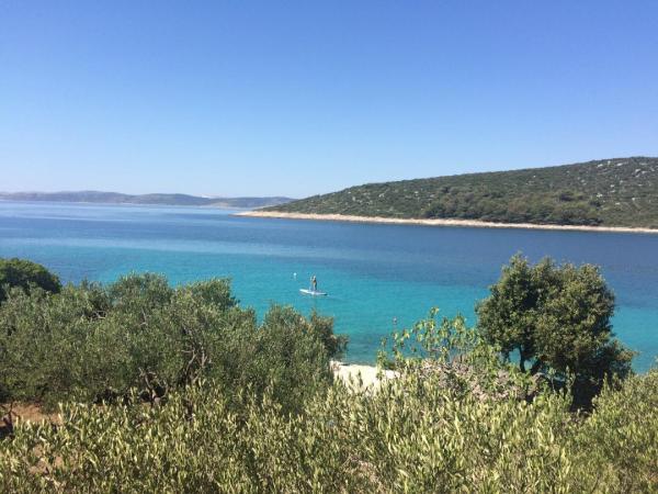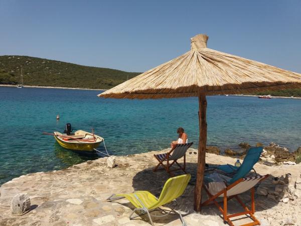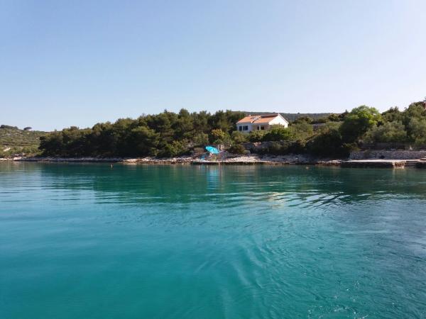 Byliśmy 2 rodziny i spędziliśmy tam niewiarygodne tydzień. Super miejsce dla każdego, kto szuka ciszy i prywatności na plaży. Ładne pokoje, przestronna i dobrze wyposażona kuchnia, ale większość czasu spędziliśmy na dużym cieniu taras z pięknym widokiem na zatokę. Łatwy dostęp do wody, bez butów wymagane zaletą prysznic na zewnątrz których używane zamiast zwykłego łazienki środka. To nie jest łatwe do przenoszenia wszystkich pracowników z samochodu do domu, trzeba przejść kilka razy od punktu, gdzie zaparkować samochód do domu na wąskim, skalistym szlaku, liczba pętli zależy od zdolności do rąk i ilości pracowników przyniosłeś, ale okazało się łatwiejszy sposób i poprosił właściciela zaparkować swoją łodzią 50m od naszych samochodów i użyć wodną przenieść torby. Myślę, że będą oferować ten nowy sposób poruszania się rzeczy dla innych gości od teraz. Właściciel jest bardzo pomocny i przyjazny, dobra Anglojęzycznych. Polecam przynieść większość żywności i ograniczenia wyjazdów do Tkon na zakup żywności, poruszając się samochodem na wyspie na kamienistych drogach nie jest bardzo wygodne. Można kupić ryby z miejscowego fishernan 2-3 razy w tygodniu.