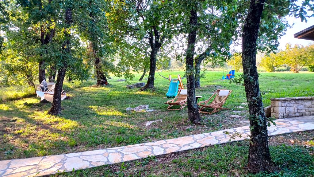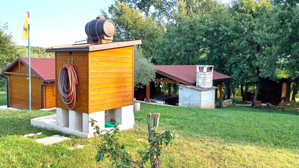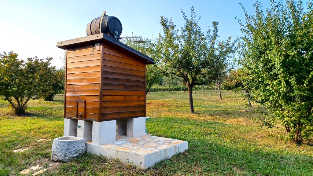 Robinson House Istra położony jest w pobliżu Vižinady, w otoczeniu winnic, gruntów ornych i lasów. Do obiektu można dojechać pojazdami. Jest autonomiczny energetycznie, woda to woda deszczowa gromadzona w zbiorniku, prąd poprzez system fotowoltaiczny. Ciepła woda poprzez bojler ogrzewany słońcem. Ale jeśli nie chcesz prasować, odgrzewać jedzenia w kuchence mikrofalowej lub w podobny sposób, nic Ci nie umknie. Oczywiście przy racjonalnym wykorzystaniu zasobów. Spokojna i cicha okolica jest idealna do odpoczynku i relaksu, zarówno dla par, jak i rodzin z dziećmi. Śpiew ptaków to dodatkowe nuty doskonałej harmonii. Robinson House Istra składa się z dwóch budynków, jednego z dwoma podwójnymi łóżkami, drugiego z łazienką, rozkładaną sofą, lodówką i przyborami kuchennymi.