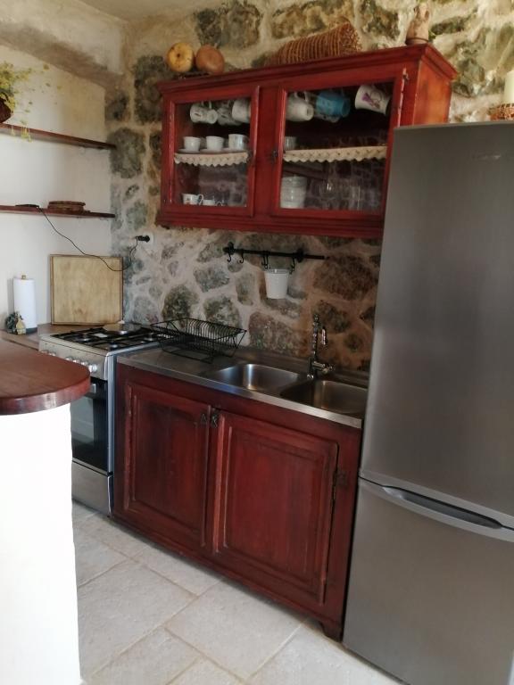Tradycyjny kamienny dom wakacyjny Ostojic. Jeśli chcesz spędzić wakacje z dala od zgiełku i tłumów i naprawdę chcesz odpocząć, odwiedź Gromin Dolac w naszym autentycznym kamiennym domu. Gromin Dolac to spokojne miejsce w południowej części wyspy Hvar bez stałych mieszkańców. Poniżej miejsca znajdują się plaże z czystym morzem. Gromin Dolac znajduje się zaledwie 3 km od większej turystycznej miejscowości Zavala, do której prowadzi droga żwirowa. Zavala ma mały sklep i kilka restauracji. Nasz autentyczny kamienny dom ma ponad 100 lat i został odnowiony, aby zadowolić współczesne życie przy użyciu naturalnych materiałów w stylu rustykalnym. Dom składa się z kuchni z jadalnią, salonu i kominka w jednym pokoju, przedpokoju, dwóch pokoi i pomieszczenia do przechowywania. Przed domem znajduje się duży taras z pięknym widokiem na wyspy Scedro, Korcula i półwysep Peljesac, miejsce parkingowe i ogród. Za domem znajduje się grill na świeżym powietrzu. Odpowiedni dla jednej rodziny z dziećmi. Witaj!