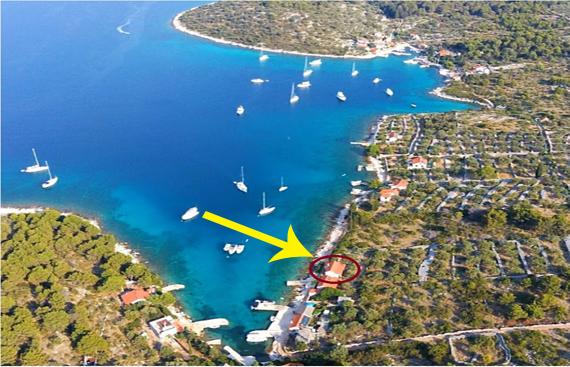 Obiekt w pełni wyposażony w energię elektryczną 12V i panele słoneczne. Znajduje się na wyspie Žut, w zatoce Dragišina. Posiada dwa pokoje, kuchnię, spiżarnię i łazienkę, duży ogród z drzewami oliwnymi, taras, sprzęt do grillowania i prysznic na świeżym powietrzu.
