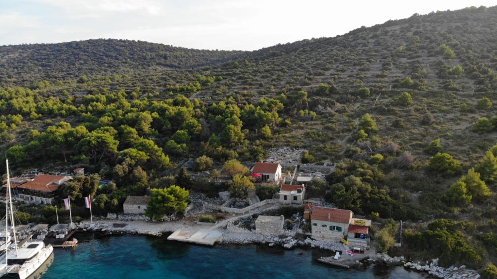 Dom Svjetla znajduje się na wyspie Žut, w zatoce Hijača. Znajduje się 20 metrów od morza, z betonową i kamienistą plażą. Miejsce do cumowania łodzi znajduje się przed domem. Dom posiada piękny duży ogród, otoczony idylliczną przyrodą. Dom posiada 4 łóżka w dwóch sypialniach. Przed domem jest grill, woda to woda deszczowa i należy ją oszczędnie uzdatniać. Energia elektryczna jest słoneczna 220 V, oświetlenie, lodówka, telewizja satelitarna. Możliwość wynajęcia łodzi w Murterze. Parking jest dostępny w Betinie. Transport odbywa się łodzią z Betiny za dodatkową opłatą.