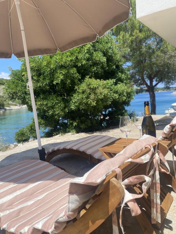 Nowo wybudowany dom wakacyjny „Levina” znajduje się w oazie zieleni i spokoju, idealnym miejscu na relaks i przyjemność. Jest urządzony w stylu rustykalnym. Znajduje się 10 m od morza w zatoce. Balkon oferuje piękny widok na morze. Zatoka jest pełna zieleni, jest schowana, poczujesz się oddzielony od świata, przytłoczony spokojem i pięknem. W zatoce jest tylko kilka innych domów. Dom ma dwie sypialnie, łazienkę z prysznicem, balkon z pięknym widokiem i taras zewnętrzny z grillem. Dom jest wyposażony w przenośną klimatyzację i wentylator. Mówiąc w przenośni, woda na wyspie jest złotem, więc należy ją racjonalnie wykorzystywać. Woda pochodzi z naturalnych źródeł, wody deszczowej. Woda nie nadaje się do picia, można jej używać do prysznica i mycia. Najlepsze restauracje, ACI Marina i targ znajdują się w sąsiedniej zatoce. Aby się tam dostać, masz około 20 minut spacerem wzdłuż skał lub łodzią. Znajdujesz się dosłownie przy wejściu do Parku Narodowego Kornati. Najlepiej jest kupić artykuły spożywcze i wodę pitną w porcie wyjścia.