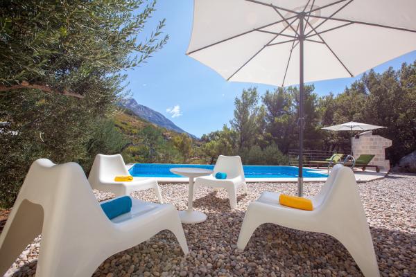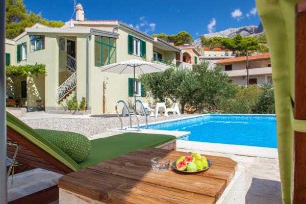 Villa Stina jest w pełni wyposażona willa z basenem z podgrzewaną wodą, znajduje się w Krvavica, małej miejscowości między Baska Voda, Makarska. Willa składa się z dwóch oddzielnych mieszkań, większe dla 6 i niższych dla 2 osób. Grunt składa się z gajów oliwnych, ogrodów, skalista, plaża, opalanie, grilla i kuchni letniej. Znajduje się on 1 km od plaży lub basenie widok na park krajobrazowy, zboczu góry. Villa Stina jest idealnym miejscem dla rodzin z dziećmi i zwierzętami są mile widziane.