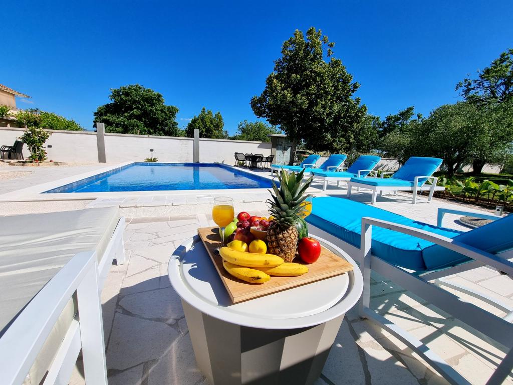 Cichy i przyjemny zakątek na Twój urlop. Znajdujemy się w małej wiosce Podlug, 6 km na południe od Benkovac, 2 km od zjazdu Benkovac z autostrady A1. Oferujemy trzy sypialnie i trzy łazienki. Na parterze znajduje się jedna sypialnia, łazienka, kuchnia i salon, a na pierwszym piętrze są dwie sypialnie, dwie łazienki i kolejny salon - bawialnia. W obiekcie znajduje się również sala kominkowa. Obiekt dysponuje również odkrytym basenem o wymiarach 8 x 4 m.