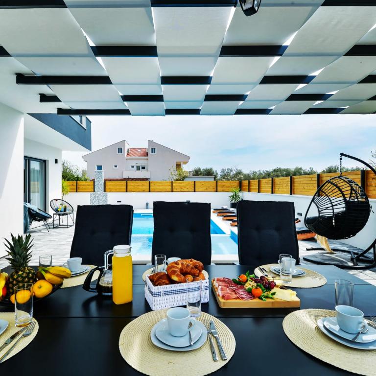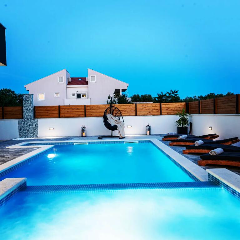 Villa JoMaNi, dom z basenem i jacuzzi, położony w spokojnej części malowniczej Bibinje na wybrzeżu Morza Adriatyckiego, jest idealną przystanią na relaksujące wakacje niedaleko historycznego miasta Zadar. Ta przestronna rezydencja o powierzchni mieszkalnej 240 m2 może pomieścić do 8 gości, zapewniając im ekskluzywne nadmorskie przeżycia. Ten dom wakacyjny z dużym basenem w ogrodzie oferuje idylliczne warunki na wakacje z rodziną, szczególnie biorąc pod uwagę bogactwo udogodnień, które zadowolą nawet najmłodszych. Dzięki odległości zaledwie 1,3 km od plaży Villa JoMaNi zapewnia bliskość morza, co czyni ją idealnym miejscem dla rodzin z dziećmi. Sam obiekt oferuje mnóstwo miejsca do zabawy, a basen to idealne miejsce na odświeżenie się i relaks w promieniach słońca. Villa JoMaNi tworzy idealne połączenie rodzinnej przyjemności, komfortu i bliskości pięknych plaż, dzięki czemu każda chwila wakacji będzie niezapomniana