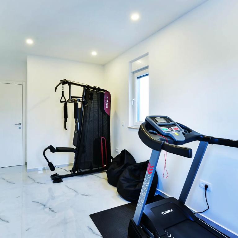 Opłata jest wliczone w cenę.Willa składa się z czterech luksusowych sypialni, z czego trzy znajdują się na pierwszym piętrze, każda wyposażona w własną łazienkę, klimatyzację i dostęp do balkonów. Czwarta sypialnia, również z własną łazienką, zlokalizowana jest na drugim piętrze, skąd rozpościera się piękny widok na okolicę. Na tym samym piętrze Goście mogą korzystać z prywatnego miejsca do opalania. Na parterze znajduje się nowoczesny salon, kuchnia i jadalnia, tworząc otwarte i przestronne środowisko do spotkań towarzyskich. Ponadto goście mogą korzystać z siłowni, aby zadbać o formę. Na parterze znajduje się również dodatkowa toaleta i pralnia. Villa Jomana oferuje połączenie komfortu, luksusu i praktyczności, co czyni ją idealnym miejscem na relaks i cieszenie się dalmatyńskim stylem życia.