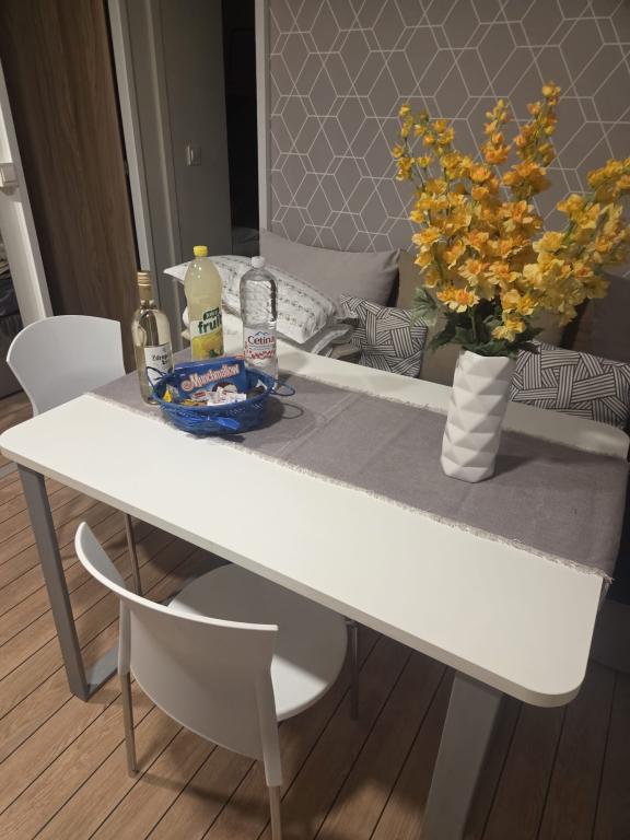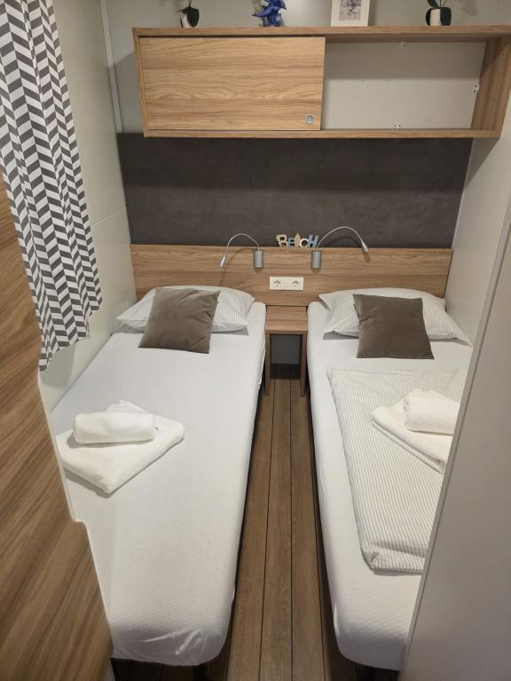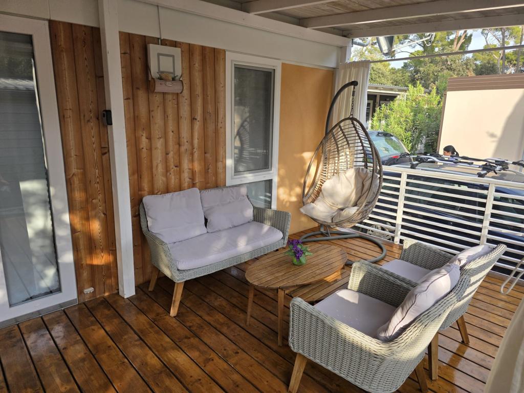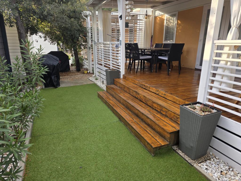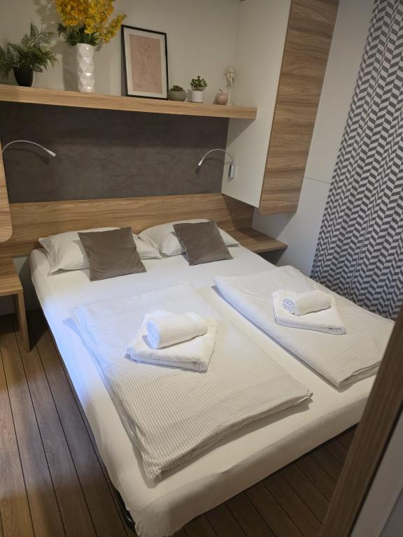Komfortowe zakwaterowanie: Domek mobilny Glamour Pakoštane w Pakoštane oferuje dwie sypialnie, dwie łazienki i przestronny salon. Do dyspozycji Gości jest w pełni wyposażona kuchnia, klimatyzacja i bezpłatne WiFi. Udogodnienia rekreacyjne: Do dyspozycji Gości jest taras, bar i basen dla dzieci. Dodatkowe udogodnienia obejmują jadalnię, meble ogrodowe i bezpłatny prywatny parking na miejscu. Doskonała lokalizacja: Kemping znajduje się 27 km od lotniska w Zadarze, zaledwie kilka kroków od plaży Punta. W pobliżu znajdują się marina Kornati i Muzeum Dziedzictwa Biogradu, oddalone o 8 km. Okolica sprzyja żeglowaniu.