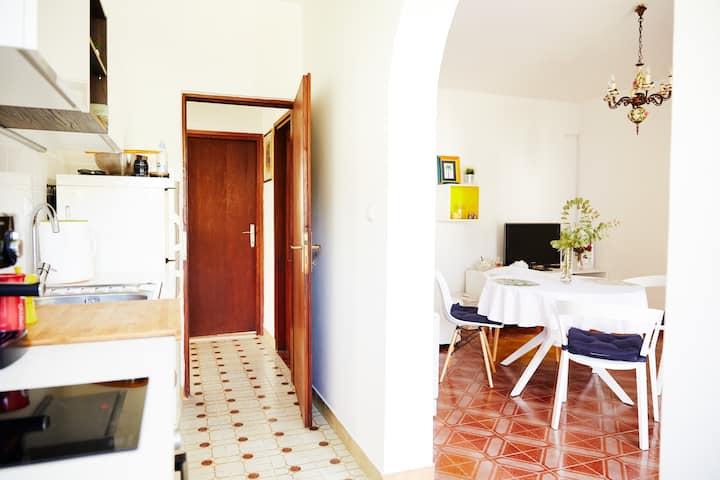 Piękny dom wolnostojący zbudowany w tradycyjnym duchu Dalmacji. Dom posiada dwie sypialnie, kuchnię, salon i duży balkon. W ogrodzie rosną tradycyjne śródziemnomorskie rośliny. Na podwórku znajduje się również parking.