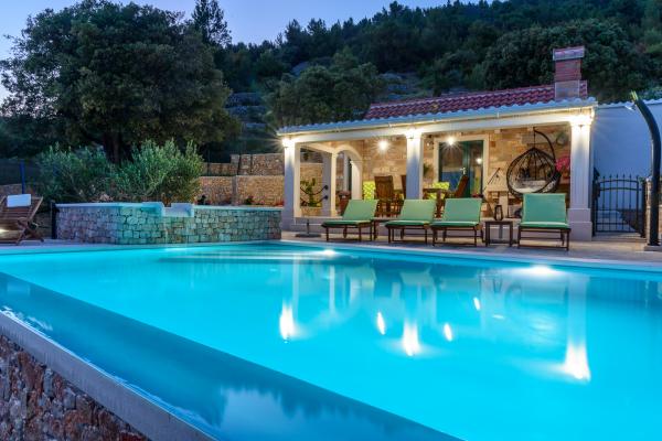 Opłata jest wliczone w cenę.Willa to nowo wybudowany dom (2017) wyposażony we wszystkie udogodnienia potrzebne do przyjemnego i przyjemnego wypoczynku. W willi znajduje się pralka, żelazko, deska do prasowania, suszarka do włosów, zmywarka, sejf, alarm, kuchenka mikrofalowa, kuchenka, piekarnik, klimatyzacja, trzy telewizory plazmowe, komfortowy teren na zewnątrz z pięknym grillem, taras słoneczny do wypoczynku podgrzewany basen i masaż w jacuzzi. Przyjedź i ciesz się z nami letnimi wakacjami! Ta część Bol, jak zobaczysz, jest bardzo spektakularnym widokiem z willi, jest niesamowity. Są otoczone naszymi winnicami i drzewami oliwnymi z widokiem na Kanał Brač (morze) z pięknymi zachodami słońca i promieniami słońca, jest bardzo prywatnie i zacisznie, samochód nie jest konieczny, ale miło byłoby go mieć. Przyjdź i przekonaj się o tym PIĘKNO