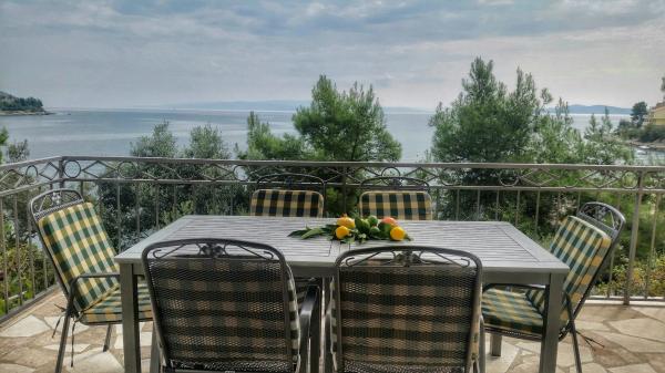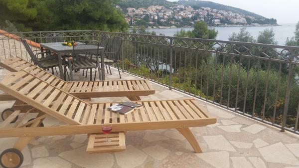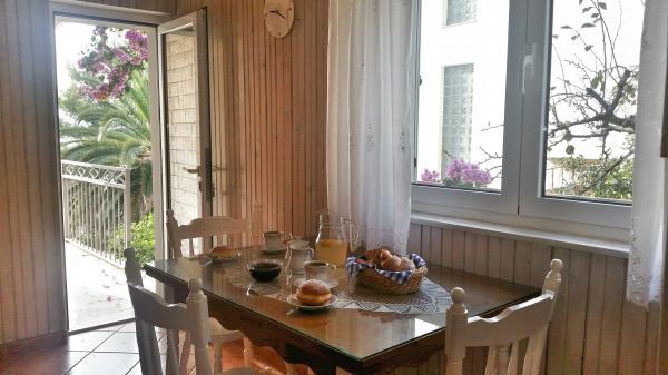 Dom rodzinny znajduje się w cichym miejscu na wzniesieniu na plaży, która jest osiągana przez prywatnego ogrodu ozdobione roślin śródziemnomorskich. dom wakacyjny składa się z dużego salonu z jadalnią (30 m2), TV / SAT, klimatyzacja. Jest wyposażony w sofę, dwa fotele (wszystkie łóżka). W salonie jest ogromny balkon z pięknym widokiem na morze i ogród. W pełni wyposażona kuchnia jest również na pierwszym piętrze oraz duża łazienka z WC i pralką. Na drugim piętrze znajdują się 4 sypialnie (15m2). Trzy sypialnie na południe, oferują wspaniałe widoki na morze i dużym tarasem (30 m2). Wszystkie pomieszczenia są równomiernie wyposażony w podwójne łóżko (160x200 cm) i klimatyzowane. Czwarty pokój z widokiem na parking i został zaprojektowany jako przedszkola z dwoma pojedynczymi łóżkami i dostęp do balkon (4 m2). Na tym piętrze znajduje się duża łazienka z WC. Dom posiada odkryty grill i parking na działce (3-4 samochody).
