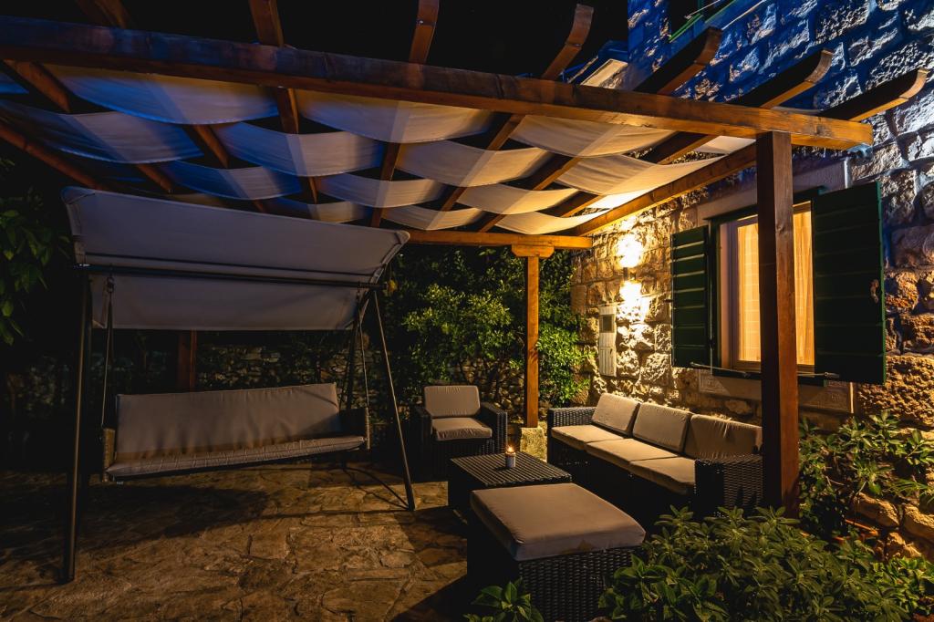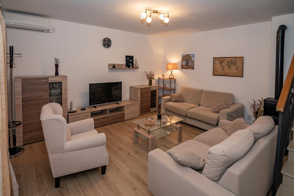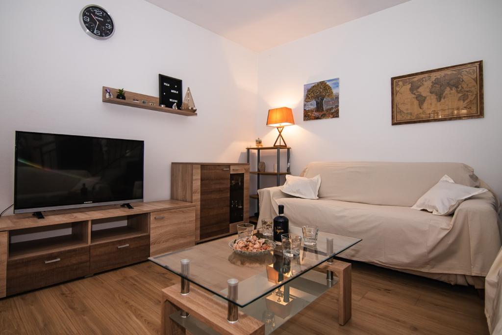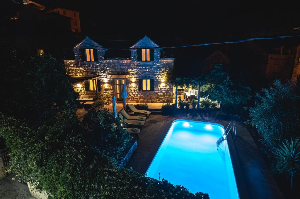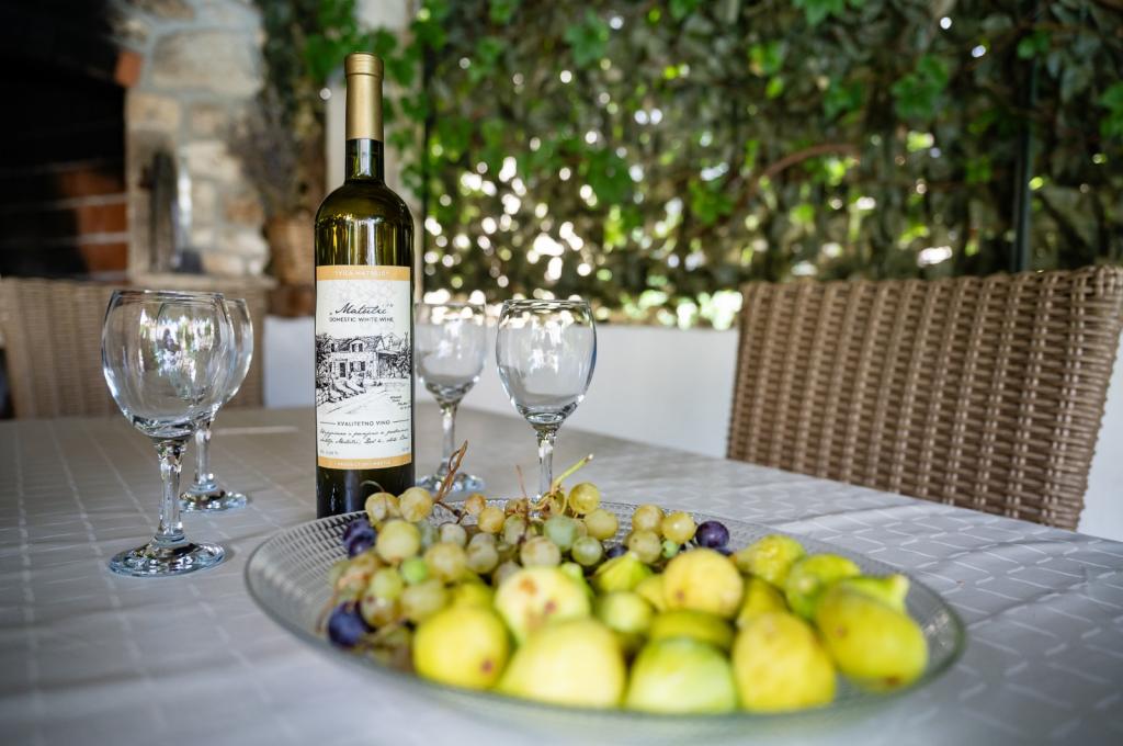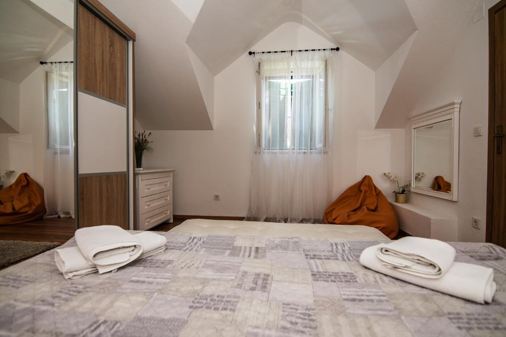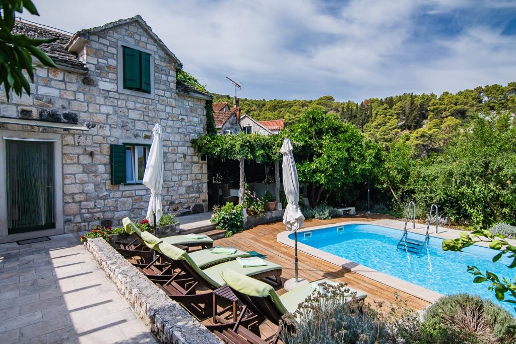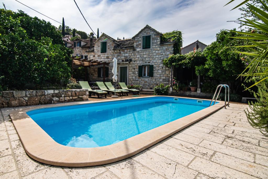 Dom ma 90m2, basen 28m2, ogród 200m2, w budynku znajdują się dwie sypialnie, kuchnia z salonem, łazienka, toaleta na piętrze obok pokoi, zewnętrzny prysznic solarny przy basenie, grill na świeżym powietrzu, dwa rowery, z których można korzystać za darmo, widok na morze. Restauracje 100 metrów, plaża 2 km.