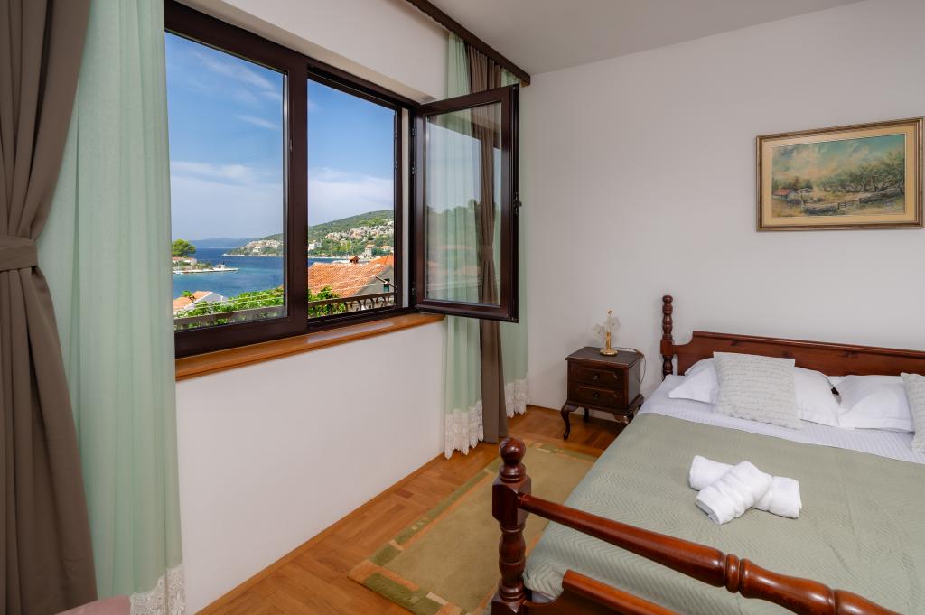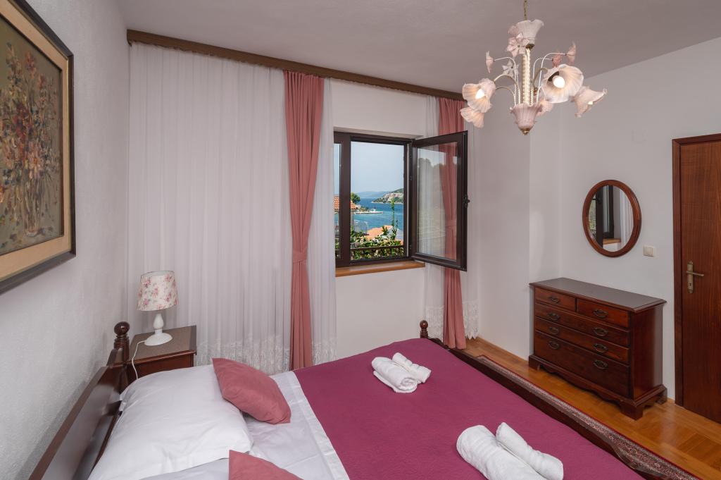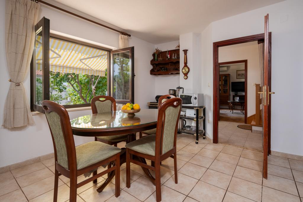 Dom wakacyjny Ines położony jest w sercu malowniczego miasteczka Drvenik Veliki – spokojnej wyspy w pobliżu Trogiru i lotniska w Splicie, z którymi łączy go regularna linia promowa. Ten urokliwy dom oferuje pełen spokój i prywatność dzięki wysokim murom, które go otaczają, a z ogrodu roztacza się piękny widok na zatokę. To idealne miejsce dla każdego, kto szuka ucieczki od codzienności i pragnie cieszyć się ciszą, słońcem i morską bryzą. Przestronny ogród sprzyja relaksu i odprężeniu – idealne miejsce na poranną kawę, popołudniowe opalanie lub wieczorne spotkania towarzyskie pod gwiazdami. Najbliższa, betonowa plaża znajduje się tuż obok domu, a naturalne piękno, takie jak słynna „Błękitna Laguna”, można odkrywać po wytyczonych drogach, idealnych do jazdy rowerem lub samochodem. Wyspa Drvenik Veliki emanuje autentyczną śródziemnomorską atmosferą, czystym powietrzem i dziewiczą przyrodą, bez tłumów i stresu – idealne miejsce na regenerację sił.