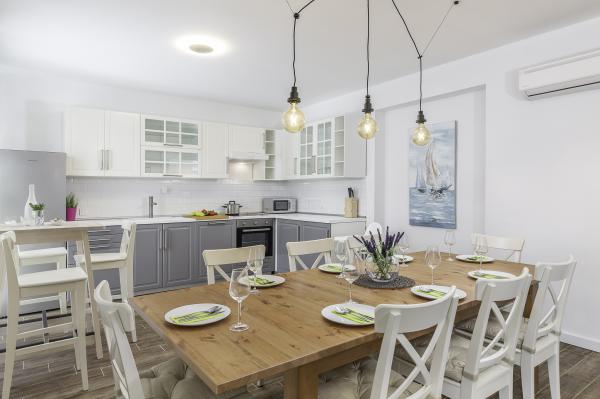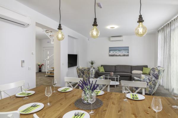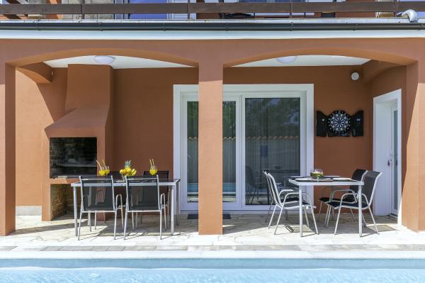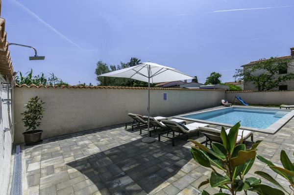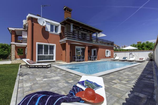 Ten nowo wybudowany dom wakacyjny znajduje się w turystycznej miejscowości Valbandon, która jest tylko 800m od pięknych plaż. Ma pięć sypialni i pięć łazienek. Na parterze znajduje się kuchnia, jadalnia, pokój dzienny, łazienka, sypialnia i kolejny mały aneks kuchenny. Na pierwszym piętrze znajdują się cztery sypialnie z łazienkami. Jedna sypialnia posiada prywatny taras, a pozostałe trzy mają dostęp do wspólnego tarasu. pokój lSvaka wyposażony jest w klimatyzację i TV-suw. Z salonu na zewnątrz na zadaszonym tarasie przed który rozciąga rozmiarze basen 8x4. Teren jest całkowicie ogrodzony i utrzymane, do dyspozycji gości grill i vanbjski dla przyjemnego obiadu z różnych przysmaków. Zagrać w piłkarzyki lub rzutki, które znajdują się na dziedzińcu. Gorąco polecamy wizytę w słynnej wiosce rybackiej, która jest tylko 2 km, jest także punktem wyjścia dla Brijuni. Zdjęcia domu pokazano wizualizację.