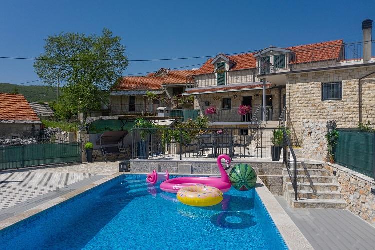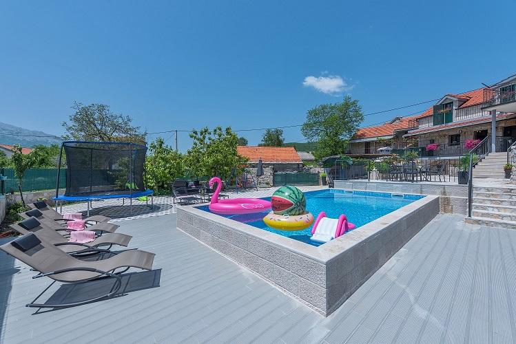Pięknie urządzony dom wakacyjny Stipanovi Dvori z basenem w głębi Dalmacji, otoczony zielenią, naturalnymi roślinami i zwierzętami. Znajduje się około 25-30 minut jazdy od Riwiery Makarskiej. Otoczony jest pięknem przyrody, oferującym swoje wspaniałe bogactwo (studnie, skały, różnorodna roślinność, drogi ponad 100-letnie i nie tylko ...) Dom składa się z dwóch pięter i poddasza. Na parterze znajduje się łazienka oraz karczma z kominkiem. Na pierwszym piętrze znajduje się duża kuchnia z salonem, a na trzecim piętrze dwie sypialnie, łazienka i duży taras z widokiem na góry Biokovo. Dom wyposażony jest w nowoczesną technologię (WiFI, smart TV, sypialnie z TV, programy satelitarne). Życzę wszystkim ciepłego, przyjemnego i przyjemnego pobytu!