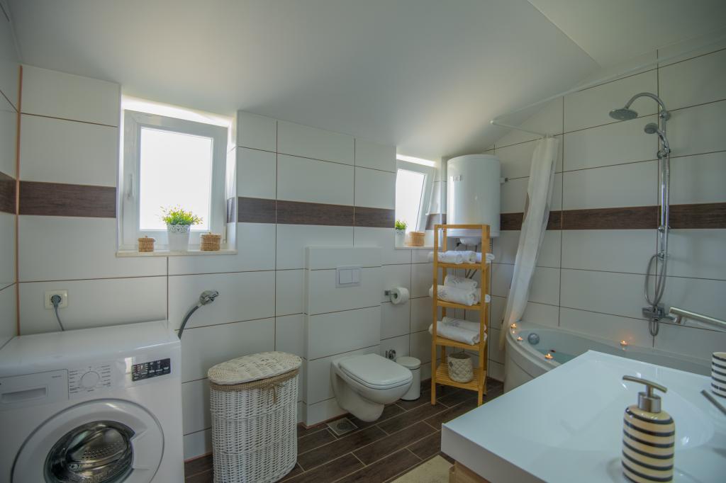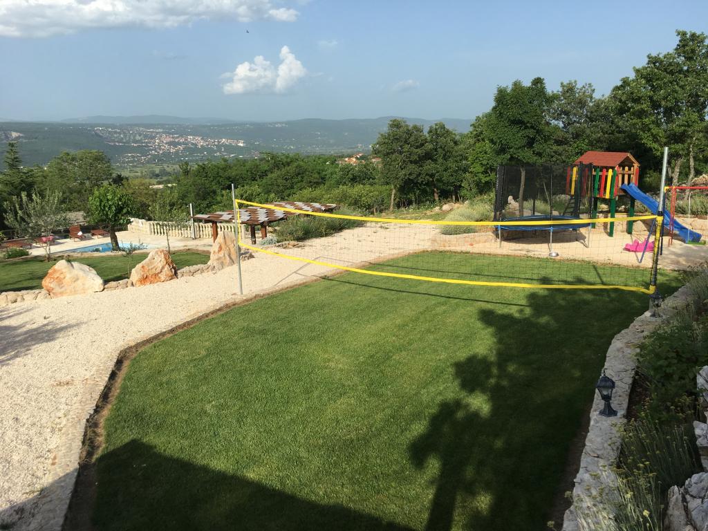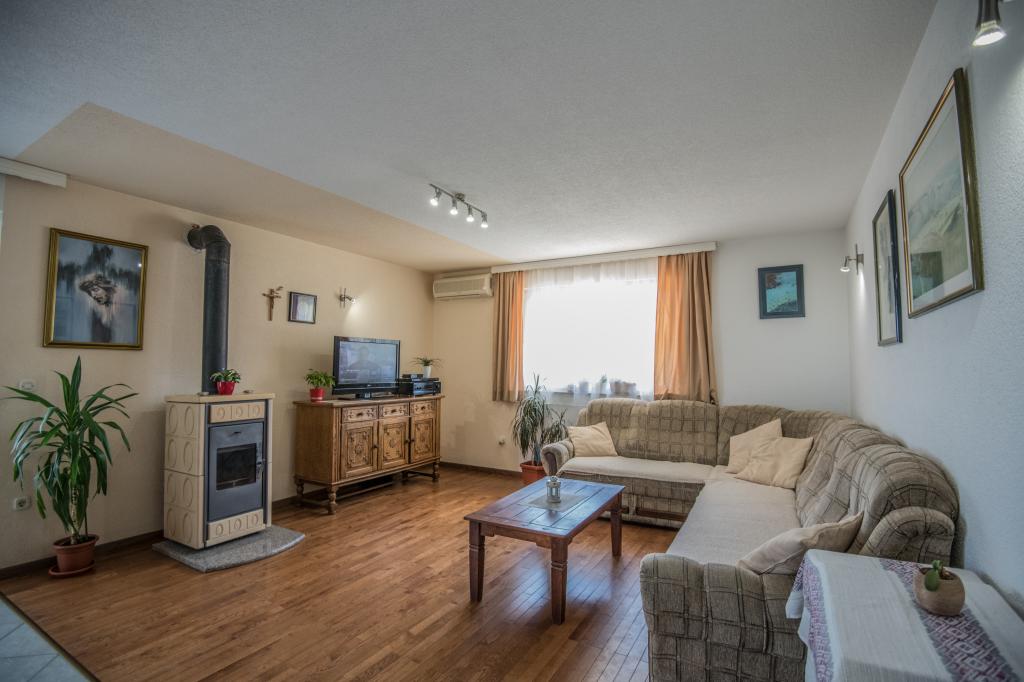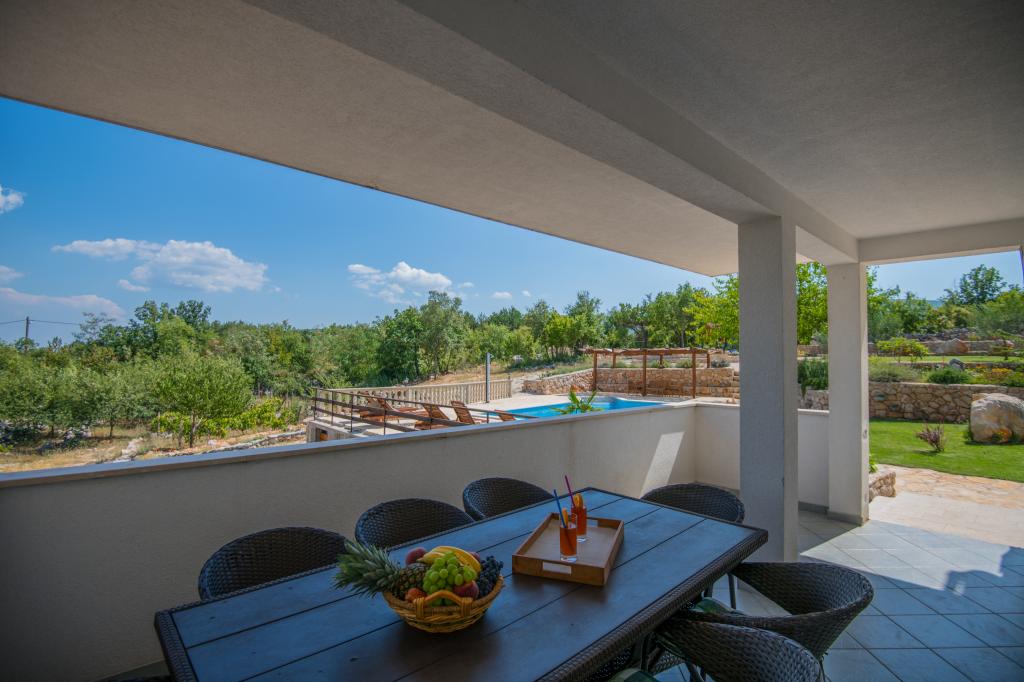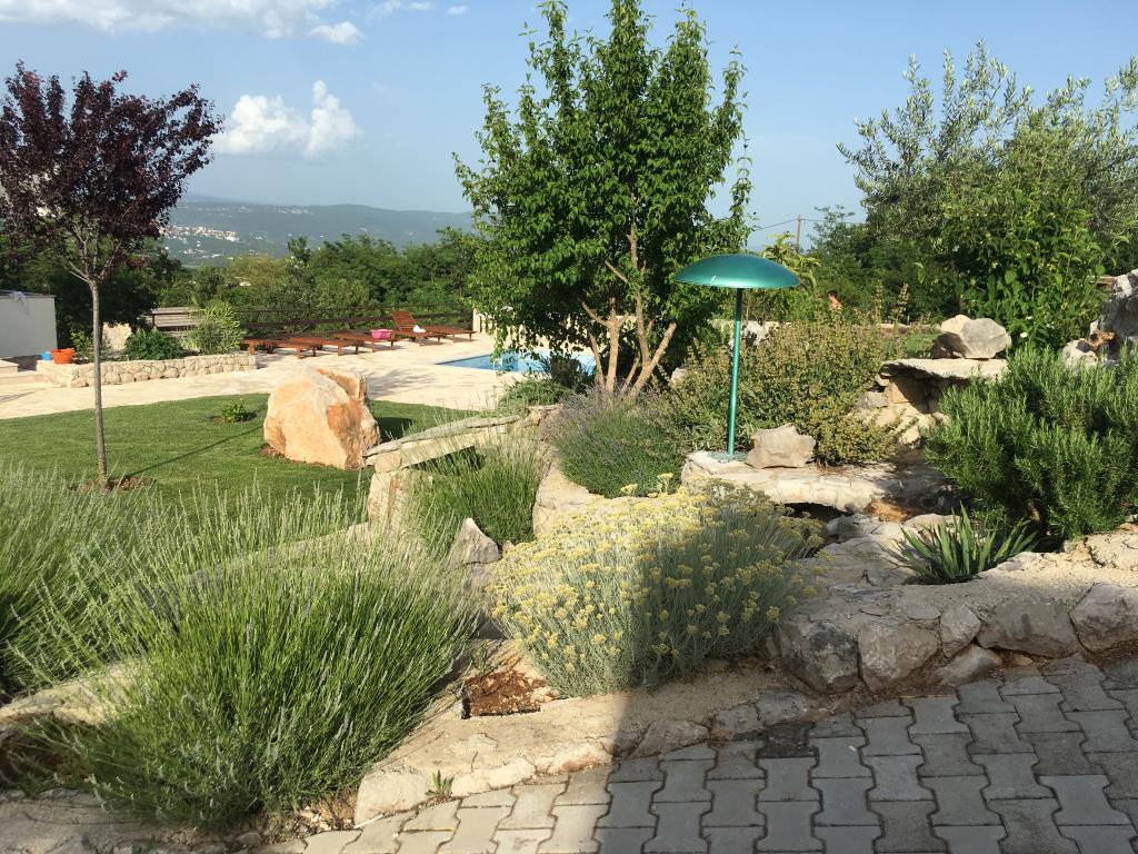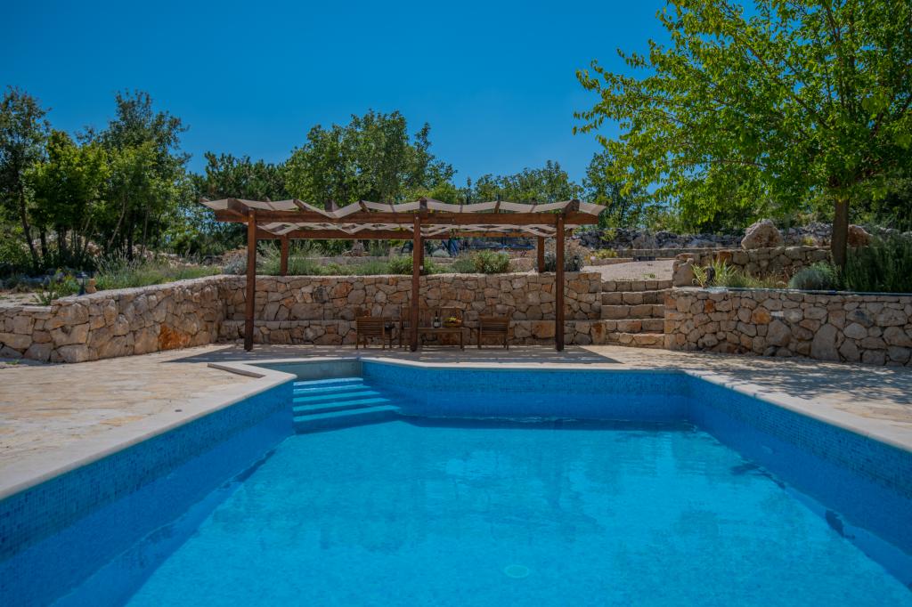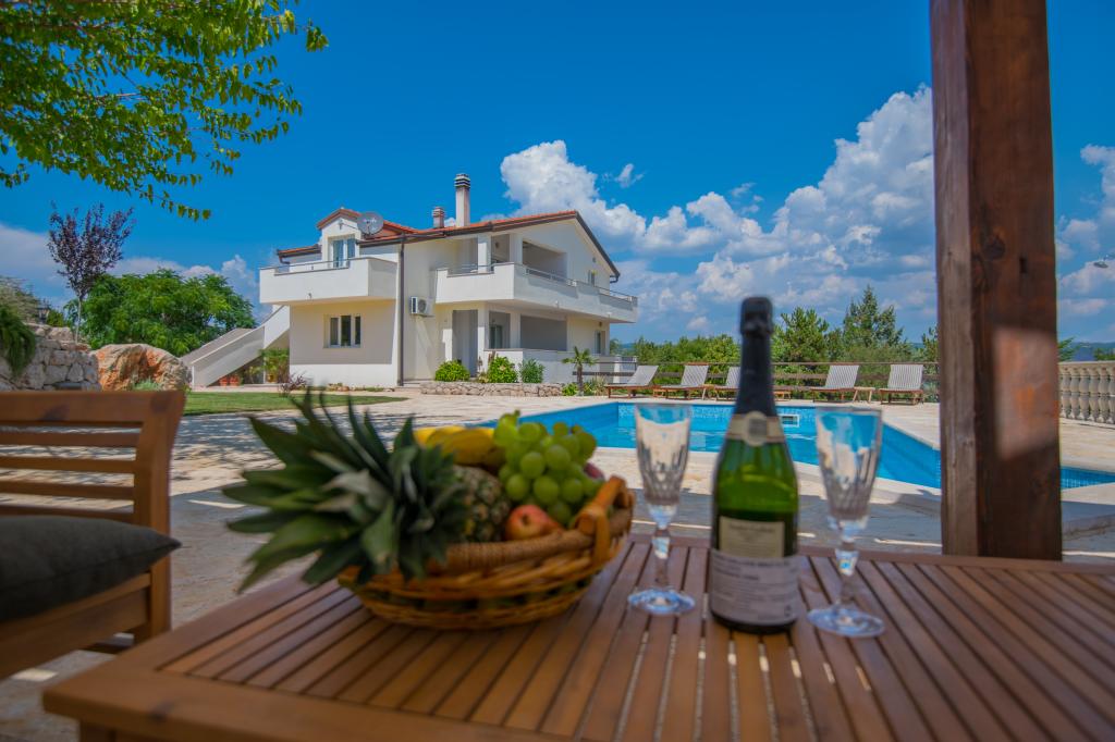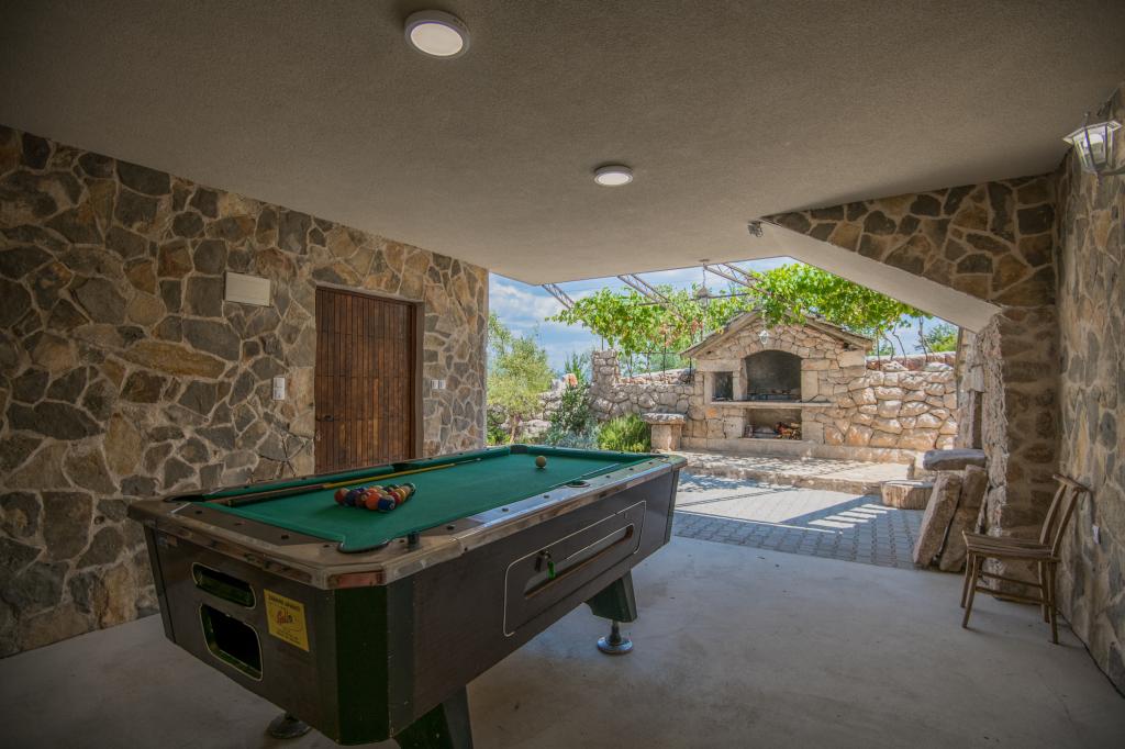 Komfortowy dom wakacyjny położony jest na dużej (4500 m2) posiadłości w idyllicznym krajobrazie środkowej Dalmacji, w pobliżu miasta Imotski, które słynie z czerwonych i niebieskich jezior. Dom składa się z dwóch oddzielnych jednostek mieszkalnych, które są nowocześnie zaprojektowane i umeblowane. Jedno mieszkanie znajduje się na parterze i składa się z trzech pokoi, salonu, kuchni, łazienki, toalety oraz werandy. Drugi lokal znajduje się na poddaszu i posiada dwie sypialnie, salon, kuchnię, łazienkę oraz duży taras. Najniższa wysokość sufitu na piętrze wynosi 200 cm w salonie. Połączone są zewnętrzną klatką schodową. Z tarasu roztacza się widok na miasto Imotski, które słynie z jezior Czerwonego i Niebieskiego. Po południowej stronie domu znajduje się duży basen, grill i plac zabaw dla dzieci. Riwiera Makarska oddalona jest od obiektu o 15 minut jazdy samochodem, a Imotski – o 5 km. Grubine oferuje typowe wakacje w Dalmacji. Obszar ten znajduje się w pobliżu wybrzeża Riwiery Makarskiej, która jest zdecydowanie najbardziej popularna w Dalmacji.