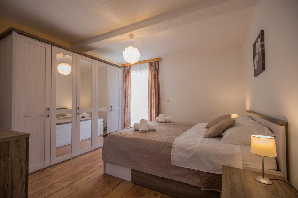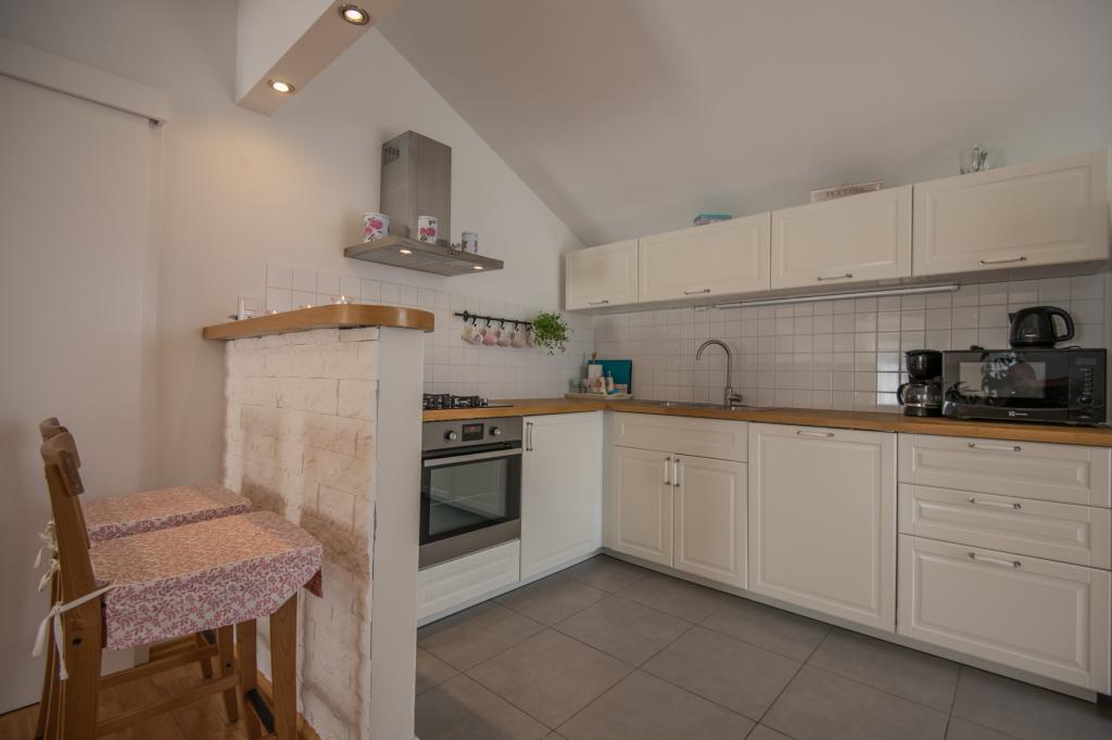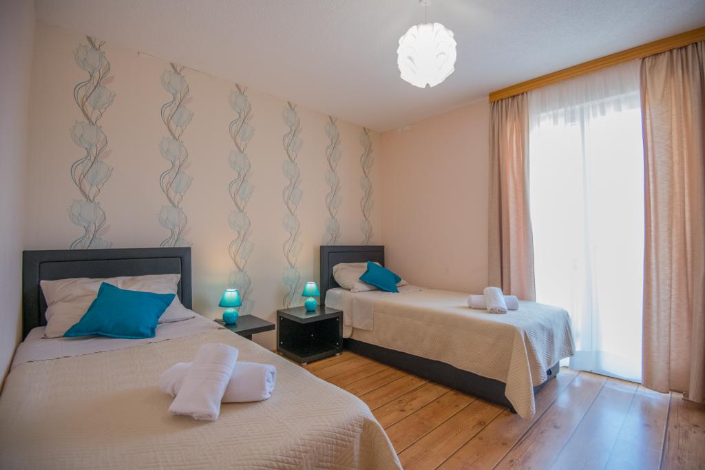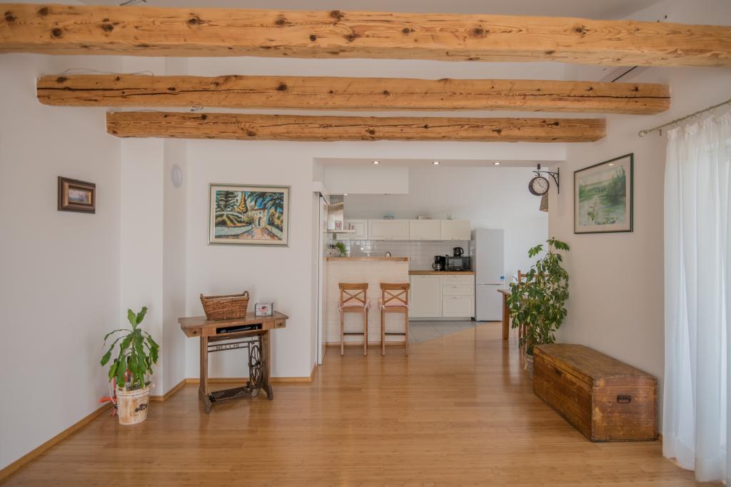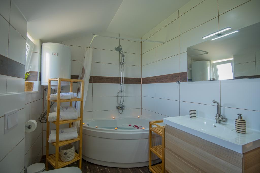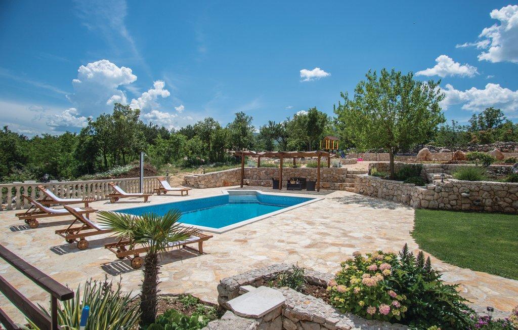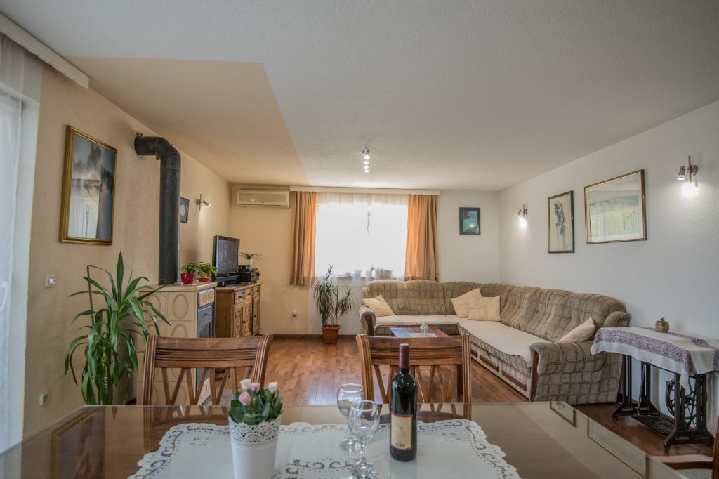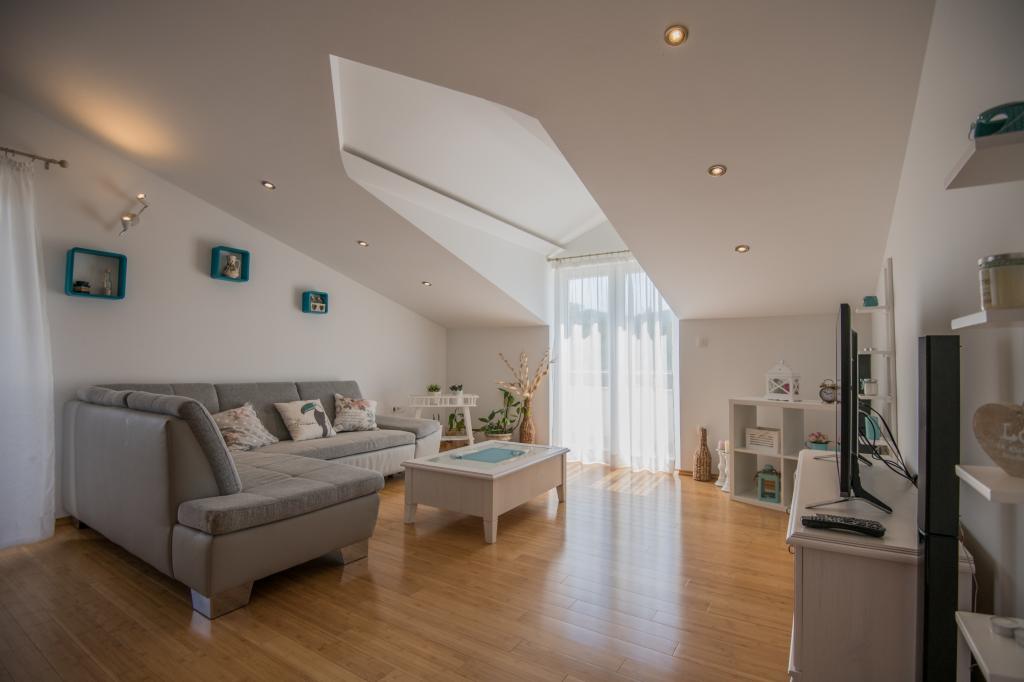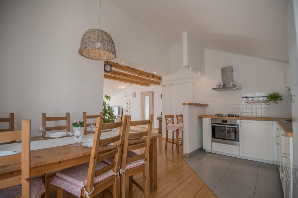 Komfortowy dom wakacyjny położony jest na dużej (4500 m2) posiadłości w idyllicznym krajobrazie środkowej Dalmacji, w pobliżu miasta Imotski, które słynie z czerwonych i niebieskich jezior. Dom składa się z dwóch oddzielnych jednostek mieszkalnych, które są nowocześnie zaprojektowane i umeblowane. Jedno mieszkanie znajduje się na parterze i składa się z trzech pokoi, salonu, kuchni, łazienki, toalety oraz werandy. Drugi lokal znajduje się na poddaszu i posiada dwie sypialnie, salon, kuchnię, łazienkę oraz duży taras. Najniższa wysokość sufitu na piętrze wynosi 200 cm w salonie. Połączone są zewnętrzną klatką schodową. Z tarasu roztacza się widok na miasto Imotski, które słynie z jezior Czerwonego i Niebieskiego. Po południowej stronie domu znajduje się duży basen, grill i plac zabaw dla dzieci. Riwiera Makarska oddalona jest od obiektu o 15 minut jazdy samochodem, a Imotski – o 5 km. Grubine oferuje typowe wakacje w Dalmacji. Obszar ten znajduje się w pobliżu wybrzeża Riwiery Makarskiej, która jest zdecydowanie najbardziej popularna w Dalmacji.
