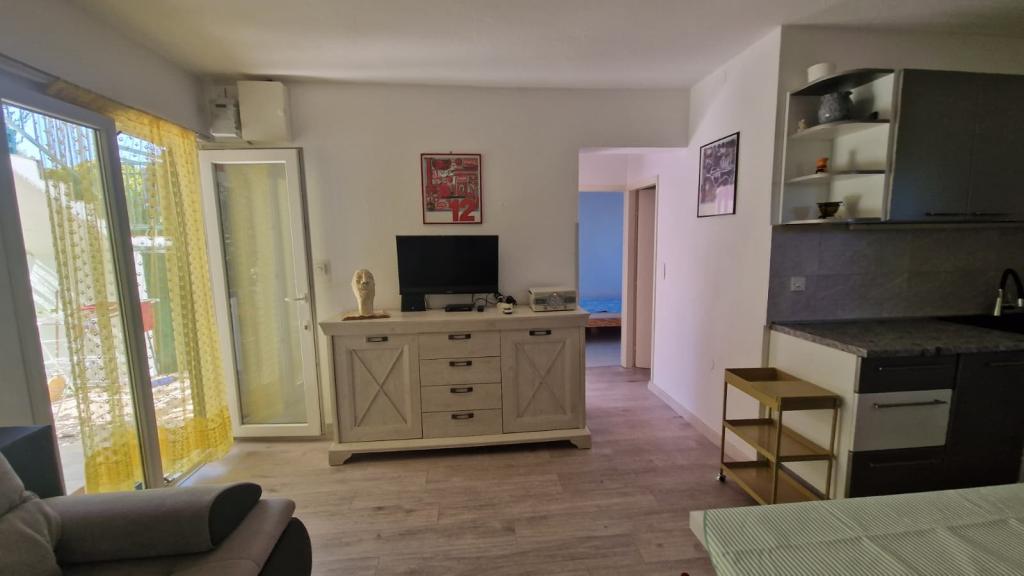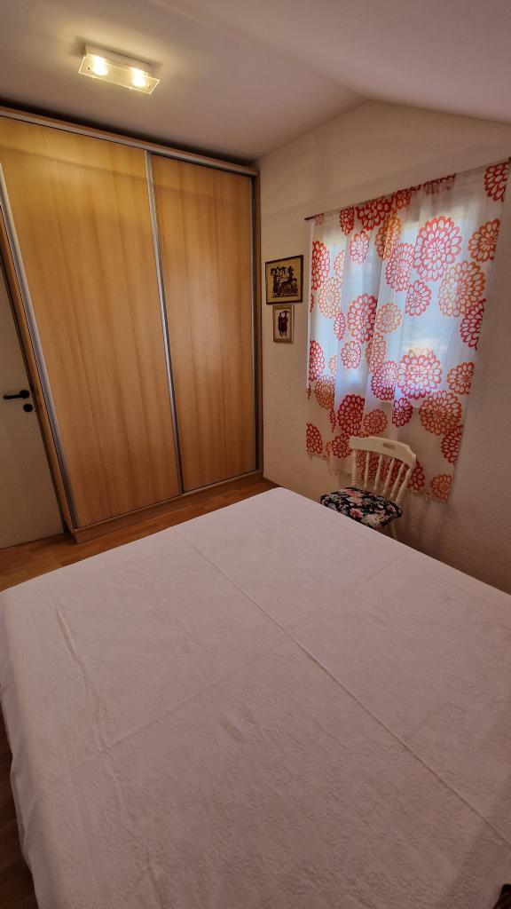 Dom składa się z dwóch w pełni wyposażonych apartamentów (parter i piętro), które łącznie pomieszczą 8 osób. Apartamenty są oddzielne, a dom wynajmowany jest w całości – idealne rozwiązanie dla dwóch rodzin lub grupy przyjaciół, którzy chcą spędzić wakacje razem, zachowując jednocześnie prywatność. Każdy apartament posiada salon, kuchnię, łazienkę, 2 sypialnie i własny zadaszony taras – idealne miejsce na poranną kawę, lunch w cieniu lub wieczorne spotkania towarzyskie. Dom oferuje bezpłatny parking (maks. 3 samochody), Wi-Fi, klimatyzację i telewizor w obu apartamentach. Lokalizacja jest doskonała na wycieczki do Szybenika (12 km), Vodic (10 km) oraz pobliskich parków narodowych Krka i Kornati. W pobliżu znajduje się sklep, restauracja i zadbana plaża z czystym morzem.