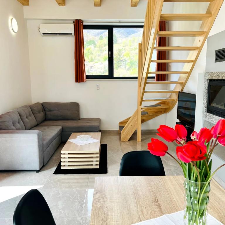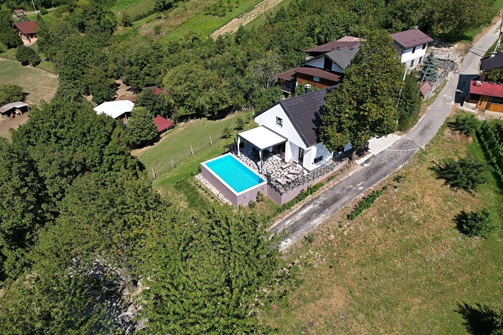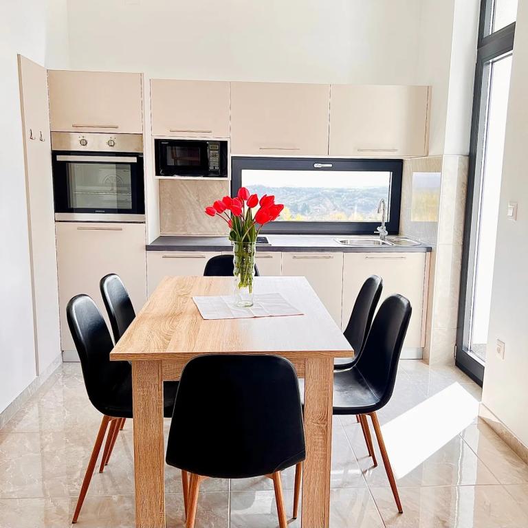 FAKTY Materiał budynku: Kamień Panoramiczny widok na krajobraz Zwierzęta: 1 Niski sufit Położony w pobliżu lasu Rok budowy: 2023 Goście: 8 UDOGODNIENIA Prywatny basen zewnętrzny: 25 m2 System stereo Smart TV Odtwarzacz CD Suszarka do włosów Internet bezprzewodowy Zabawki i gry wewnętrzne Pływanie basen czynny od maja do końca września Zewnętrzny basen z podgrzewaną wodą Ilość krzesełek do karmienia: 1 POKOJE Kuchnia: zimna i ciepła woda Łazienka 1 WC: zimna i ciepła woda oraz prysznic Łazienka 2 WC: zimna i ciepła woda oraz prysznic Sypialnia 1 podwójne łóżko dla 2 osoby Sypialnia 2 Podwójne łóżko dla 2 osób Sypialnia 3 Podwójne łóżko dla 2 osób Sypialnia 4 Podwójne łóżko dla 2 osób KORZYŚCI Płyta elektryczna: 2 płyty Lodówka Zamrażarka: 10 l Ekspres do kawy Kuchenka mikrofalowa Pralka do prania Odkurzacz Piekarnik Izolacja całoroczna Ogrzewanie elektryczne Kominek Klimatyzacja zimno/ciepło: 1 szt