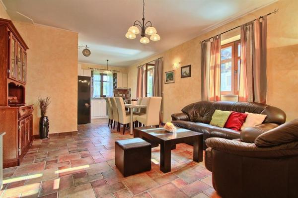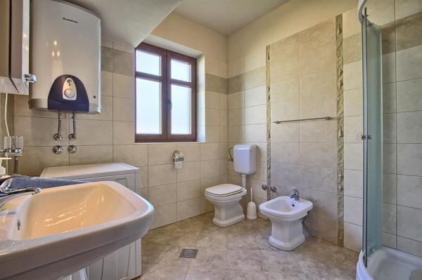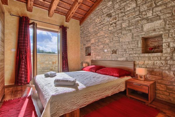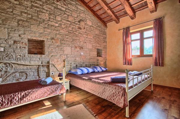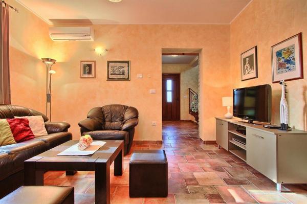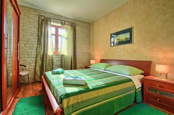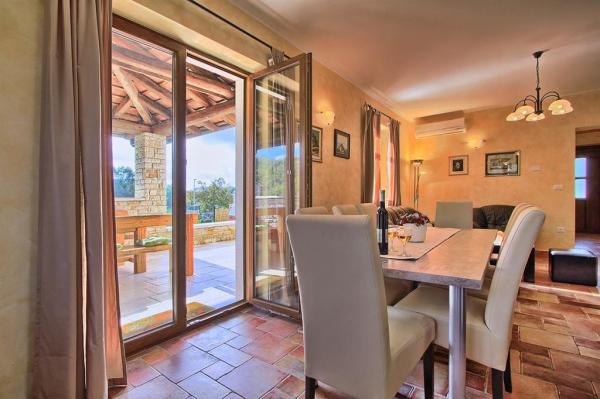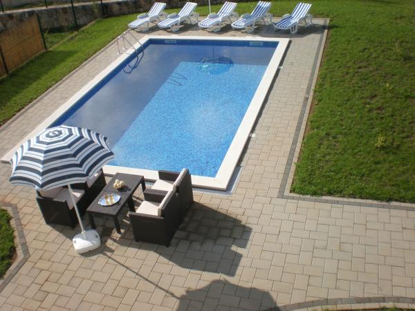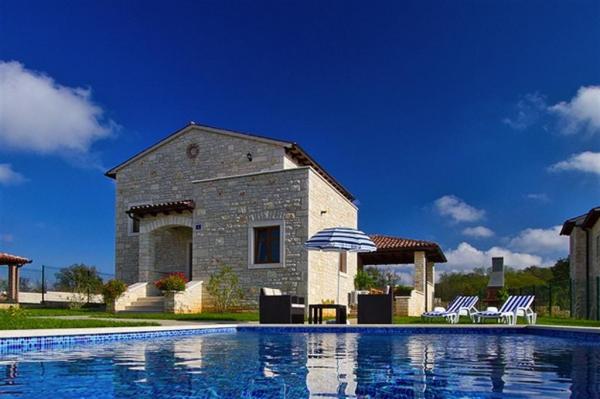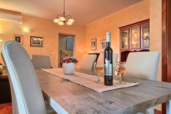 Villa Jelena położony jest w centralnej części półwyspu Istria, niedaleko małej miejscowości Kanfanar i tylko 14 km od morza, w mieście Vrsar, i 20 km od miasta Rovinj. Willa dzieli się na dwa piętra i składa się z 3 pokoi i 1 pokoje trzyosobowe, 3 prysznic / łazienki, duży salon z dostępem do zadaszonym tarasem i basenem, w pełni wyposażoną kuchnią, klimatyzowany pokój dzienny z jadalnią i kuchnią, i może pomieścić 9 osób. Prywatny basen o wielkości 40 m2, otoczony trawnikiem i całym osiedlu 1250 m2 jest ogrodzony, więc dom jest idealnym miejscem na odprężające wakacje rodzin z dziećmi. Z basenem są dostępne 9 krzesła i parasole 4. W przedniej części domu jest zadaszony taras z drewnianym stołem i krzesłami oraz grillem i relaksującej atmosferze z basenu można korzystać przygotowując posiłki. Jest parking dla 5 samochodów. USUWANIE gości hotelowych tylko w soboty! Inne dni wcześniej!