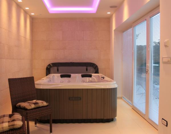 Wakacje Willa Lavanda znajduje się w Kanfanara, w spokojnej okolicy, w centrum Istrii. Dom jest nowoczesny i zapewnia pełen komfort swoim gościom, którzy chcą odpocząć w ciszy i spokoju, z dala od tłumów, w oazie zieleni i kwiatów. Na pierwszym piętrze znajdują się trzy sypialnie, dwie łazienki z prysznicem i oddzielnym WC, salon, kuchnia, jadalnia i taras z widokiem na morze i okolicę. Wszystkie pomieszczenia w domu są klimatyzowane i nowoczesne. Na parterze znajduje się basen odnowy biologicznej z jacuzzi, sauną i fitness, oddzielnego sprzętu do ćwiczeń. Dom posiada odkryty basen z jacuzzi w ogrodzie i pokryte gazeebo, krzesła, kominek, grill i huśtawki dla dzieci. Goście mają dostęp do czterech rowerów w czasie ich pobytu w domu, które mogą sprostać wielu tras rowerowych w okolicach Kanfanara.