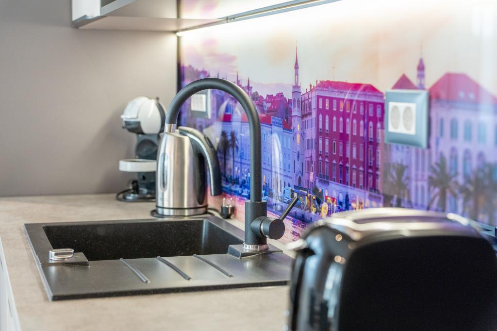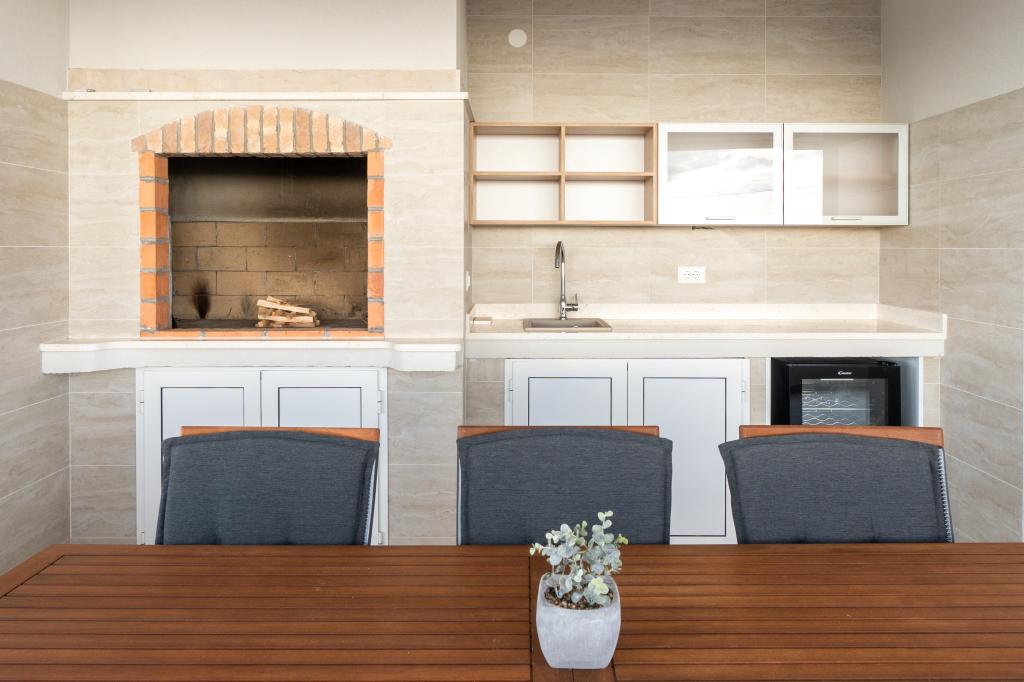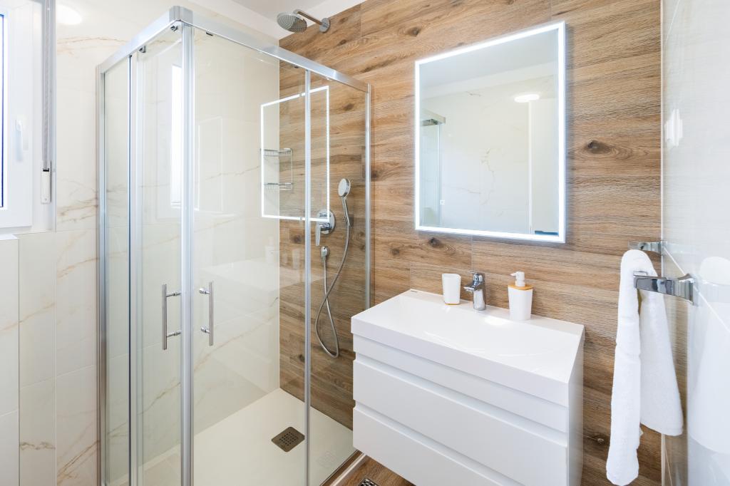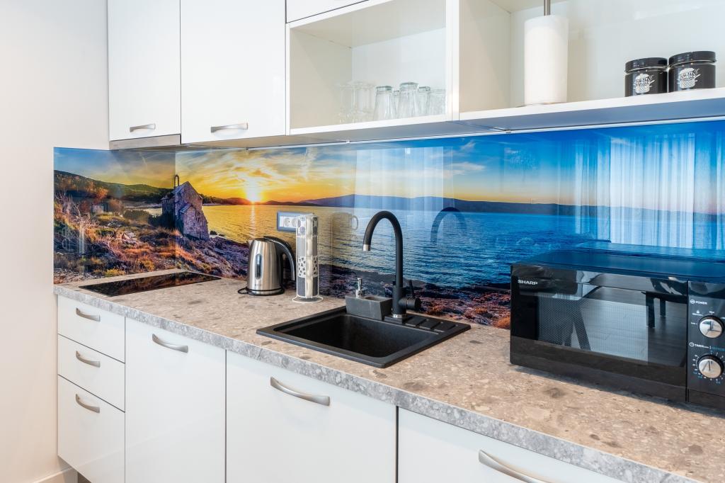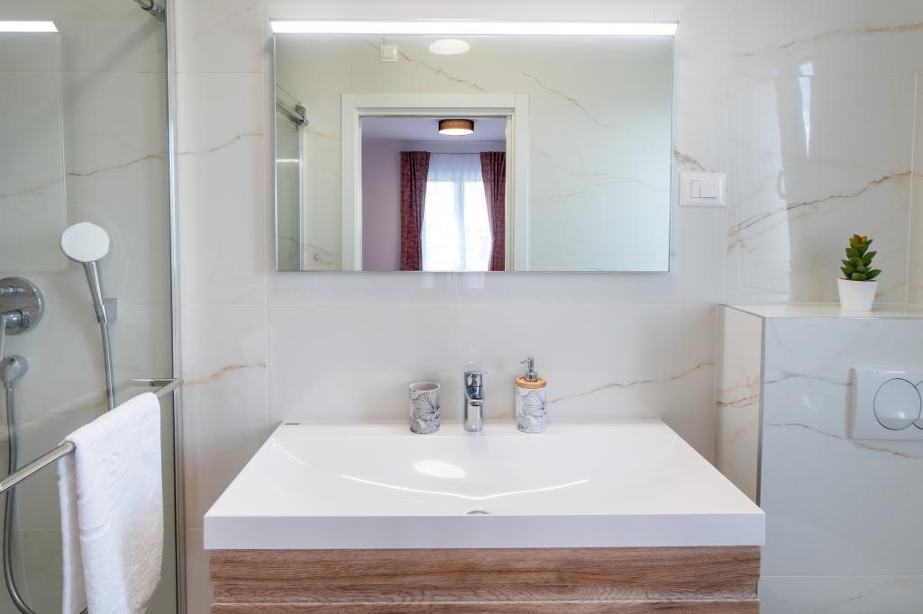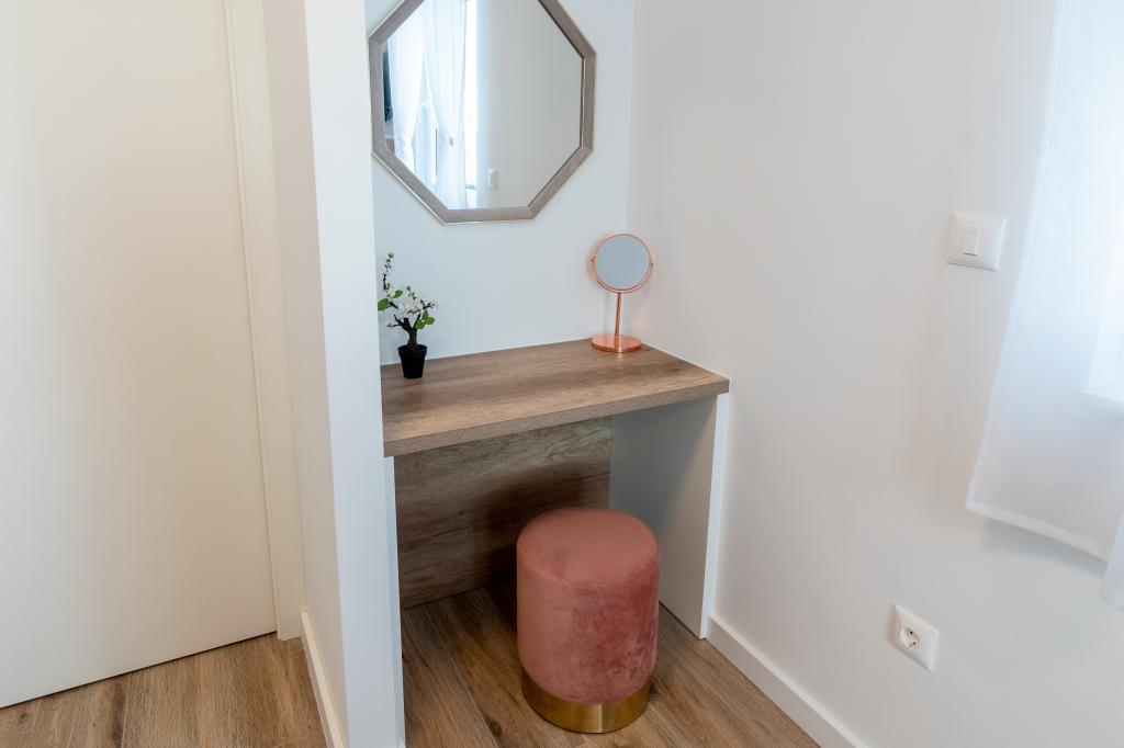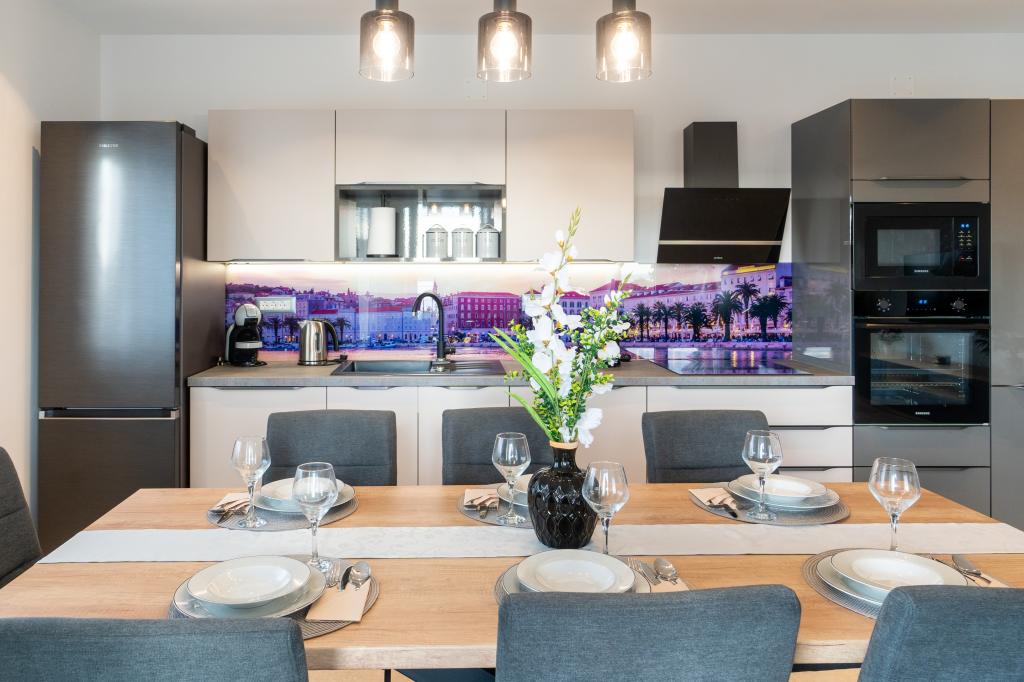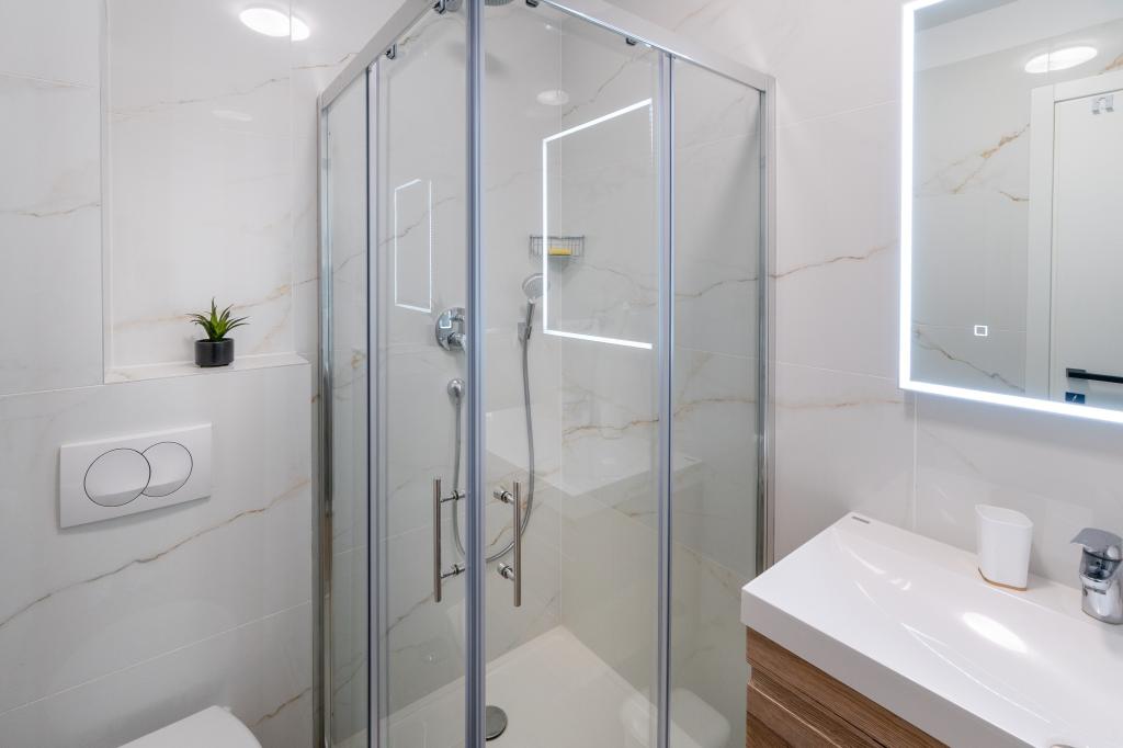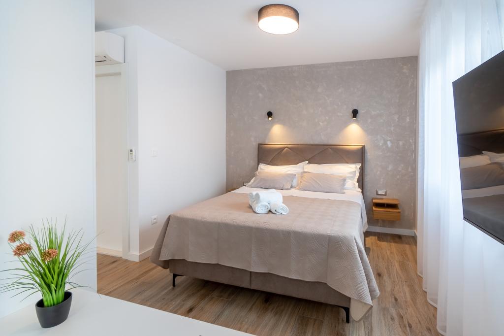 Nowy obiekt. Ciesz się z rodziną w tym nowoczesnym obiekcie z pięknym zachodem słońca i widokiem na morze. Cicha okolica. Dwa apartamenty wynajmowane w całości. Na parterze znajduje się apartament typu studio składający się z kuchni, łazienki i pokoju z łóżkiem małżeńskim, w salonie znajduje się również dodatkowe łóżko. Na pierwszym piętrze znajduje się duży apartament składający się z kuchni, salonu, balkonu z meblami ogrodowymi idealnymi na poranną kawę, dwóch pokoi z łóżkiem małżeńskim i jednego pokoju z dwoma oddzielnymi łóżkami, które w razie potrzeby można połączyć. Mieszkanie to posiada dwie łazienki, z czego jedna jest częścią pokoju, a druga toaleta. Na drugim piętrze budynku znajduje się duży taras z widokiem na cały lokal oraz wanna z hydromasażem dla 5 osób, leżaki do opalania, grill, kuchnia letnia oraz stół i krzesła. Na zewnątrz znajduje się również mniejszy zadaszony obiekt z grillem oraz stołem i ławkami.