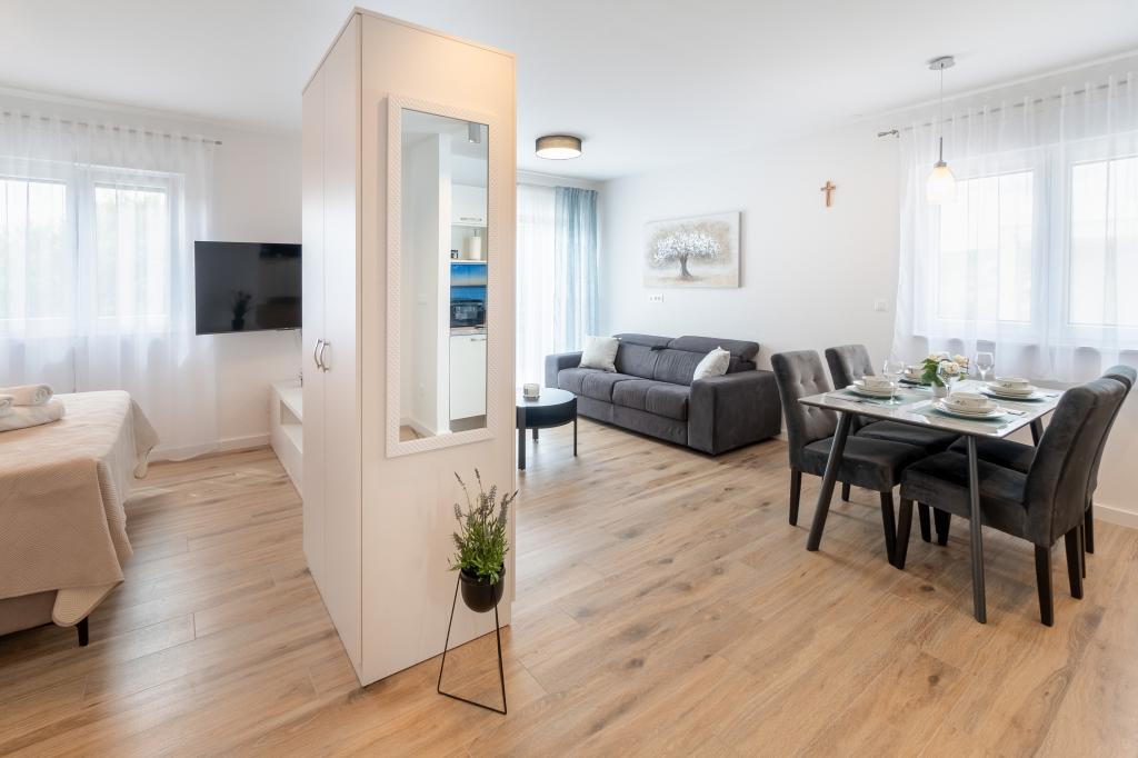 Czytaj więcejCena podana jest za dobę za cały obiekt. Prosimy o wpłatę zadatku w wysokości 30% z góry na konto bankowe przy rezerwacji, a resztę ceny całkowitej po przyjeździe do apartamentu. W okresie maj, czerwiec, wrzesień i październik minimalna ilość noclegów to 5 noclegów. W okresie lipca i sierpnia minimalna ilość noclegów to 7 noclegów. Przy 14 i więcej noclegach 10% rabatu od podanego cennika. Doba hotelowa trwa od godziny 15:00, a wymeldowanie do godziny 10:00. Wszelkie zapytania prosimy kierować w formie pisemnej (wysyłając zapytania poprzez formularz internetowy, e-mailem lub poprzez wiadomości poprzez aplikację WhatsApp lub Viber)